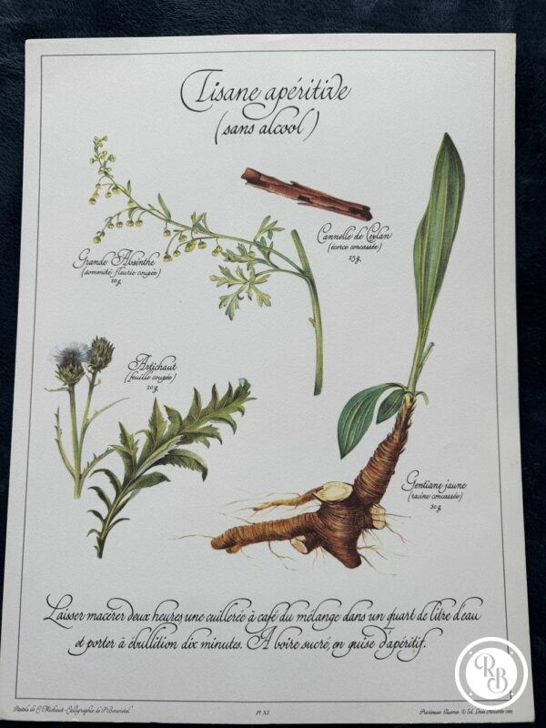 Affiche/Planche XX – « Précieuses Tisanes » éditée en 1982 par L. Pariente – Pastels de Michaud et Calligraphie de Benoistel
