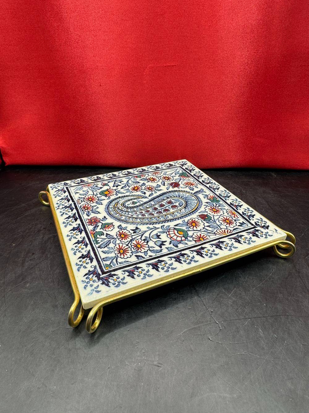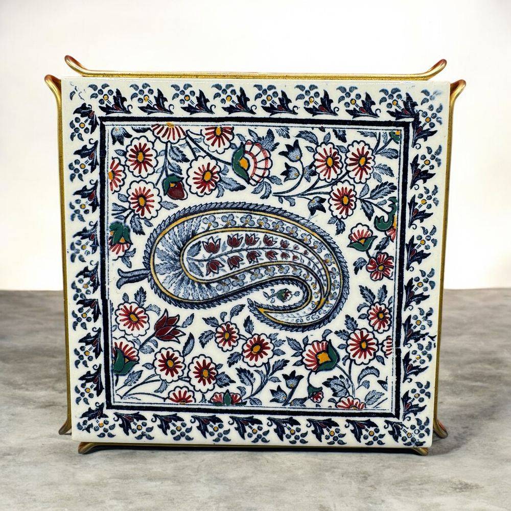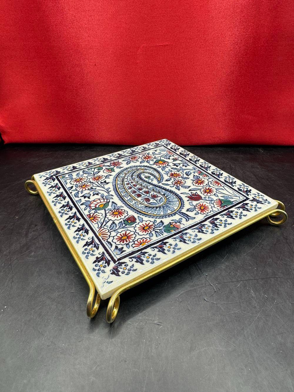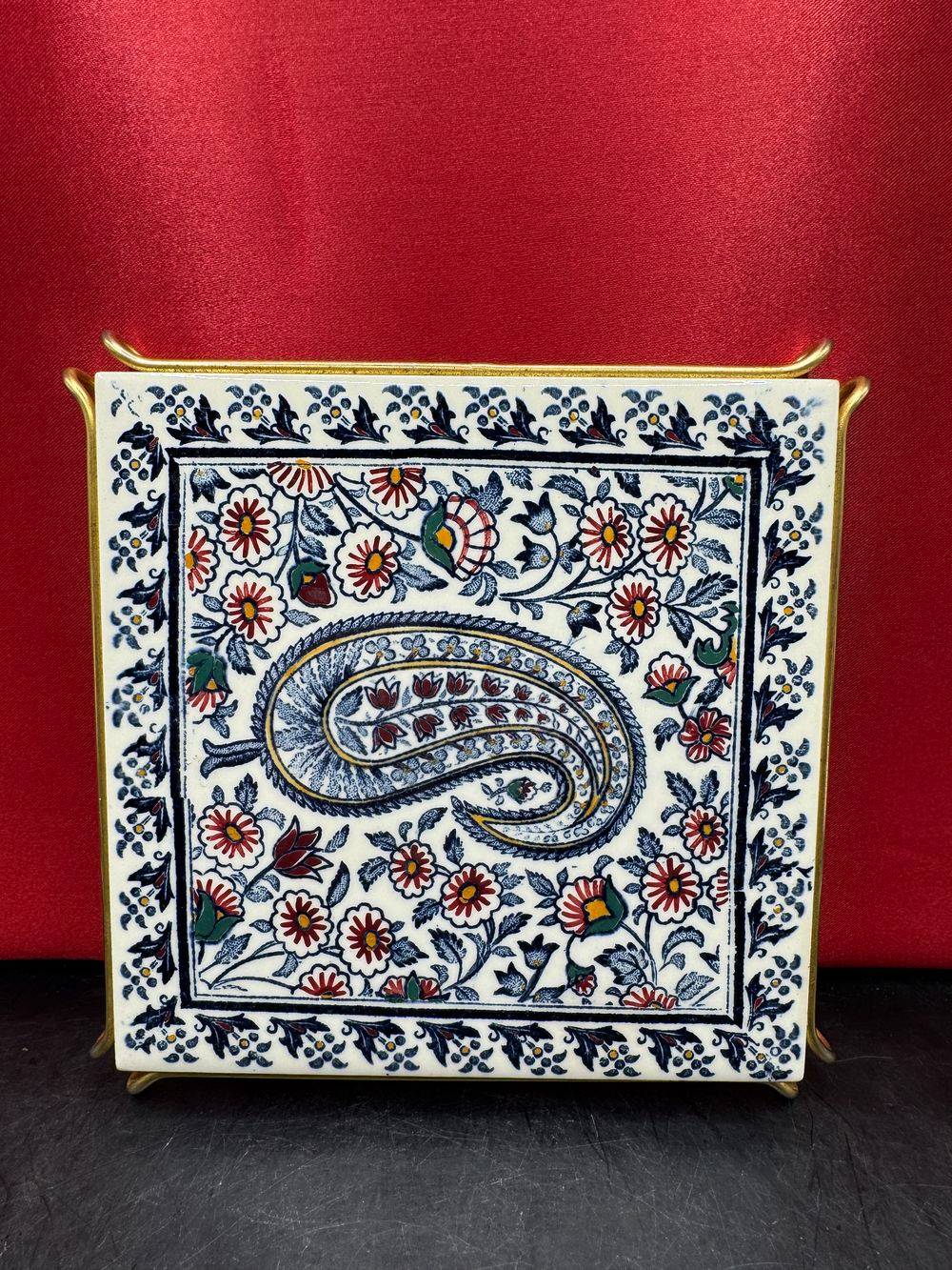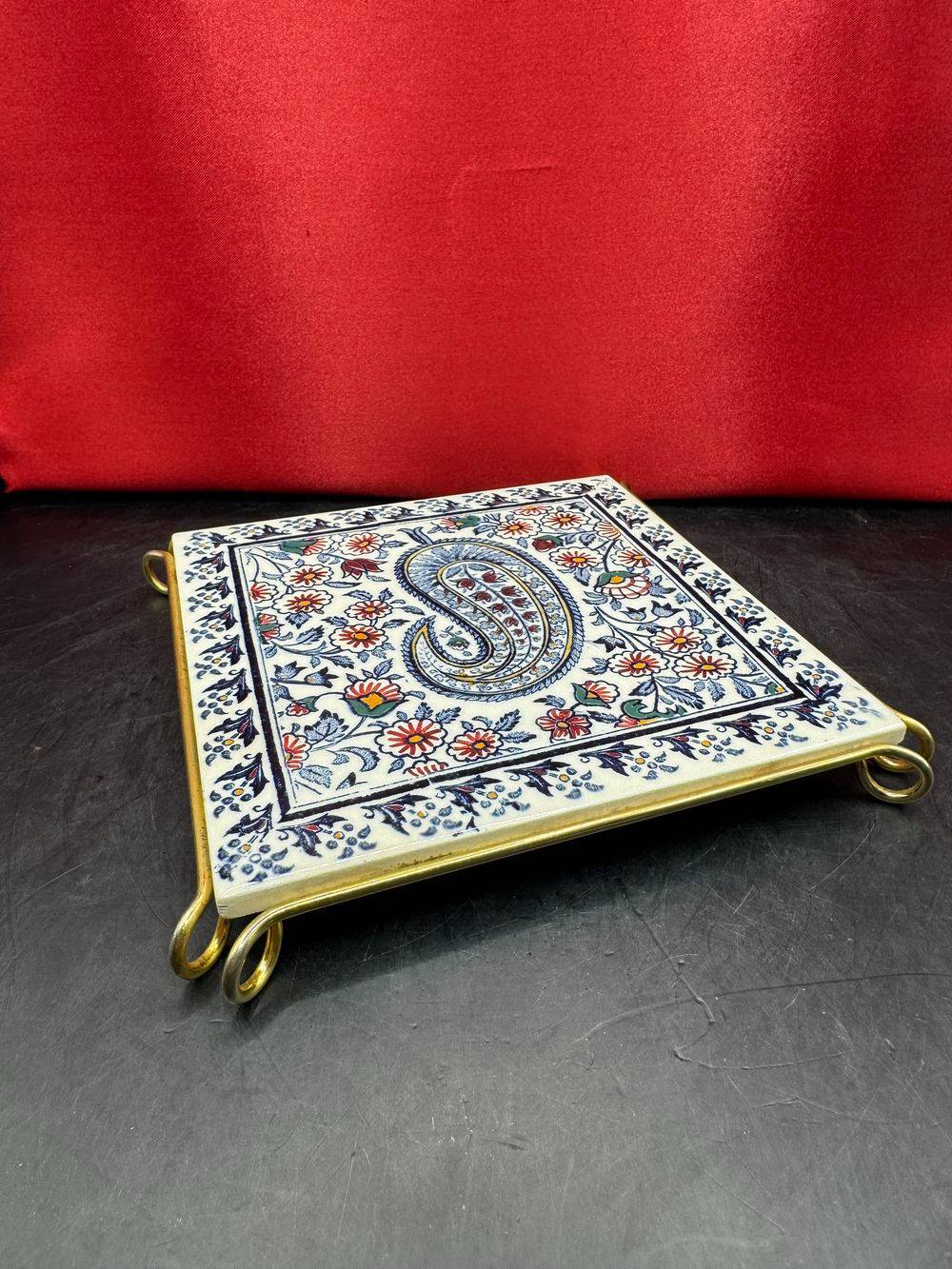 Ancien dessous de plat – Carreau de faiënce – De la Faïencerie de Gien – Modèle Cachemire bleu