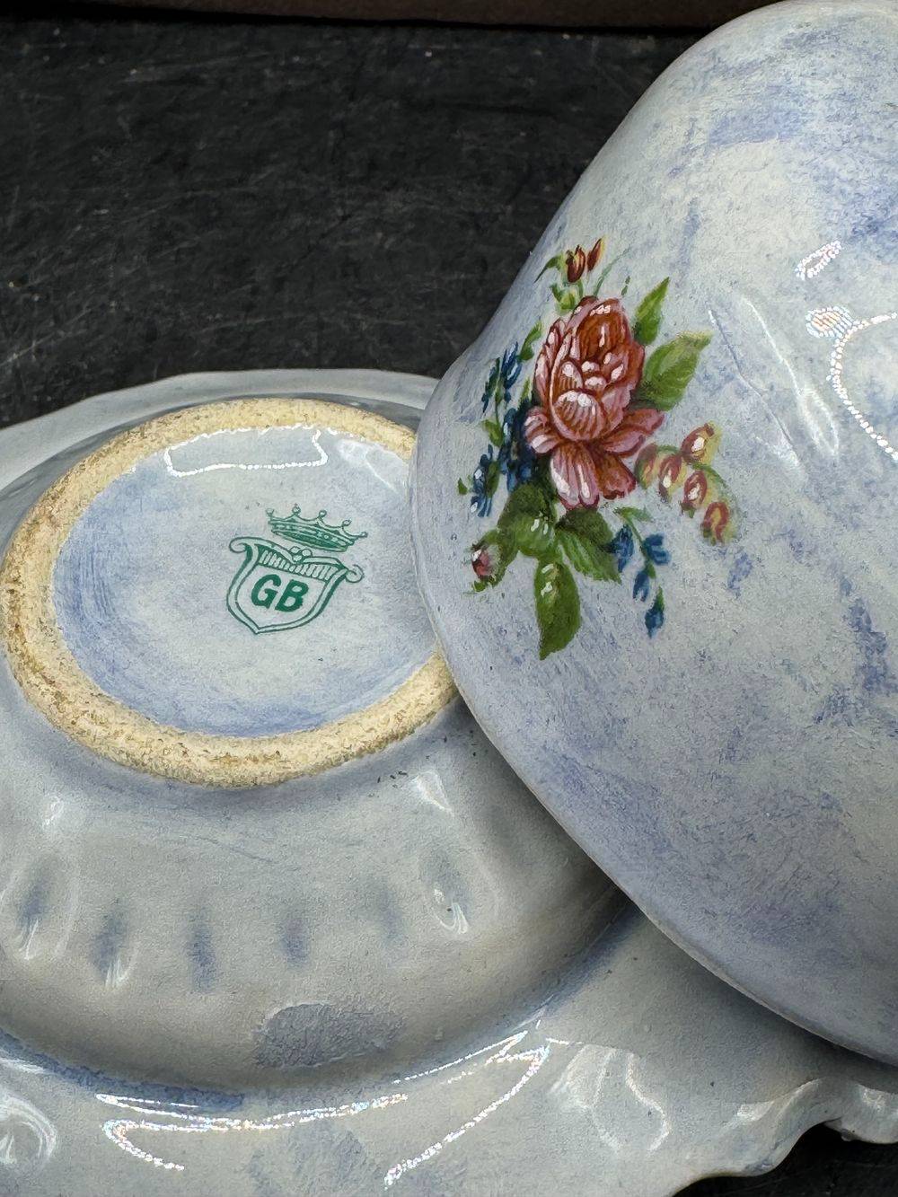 Ancien et rare beurrier et son couvercle – En céramique et décor floral peint à la main – Estampillé GB – Milieu 20ème – Collection – Déco
