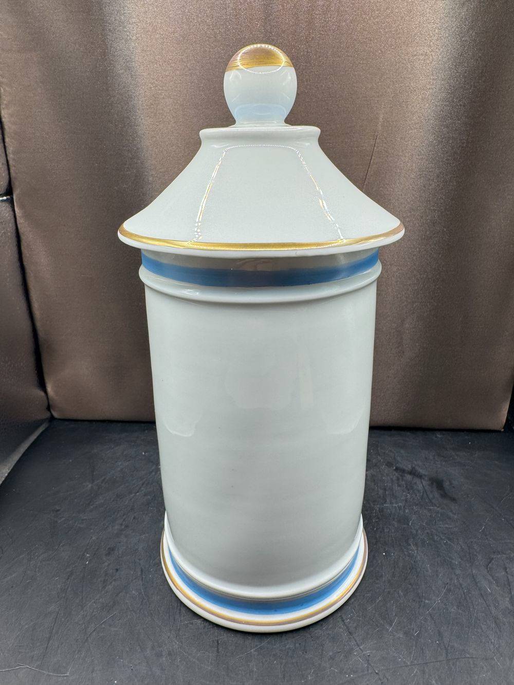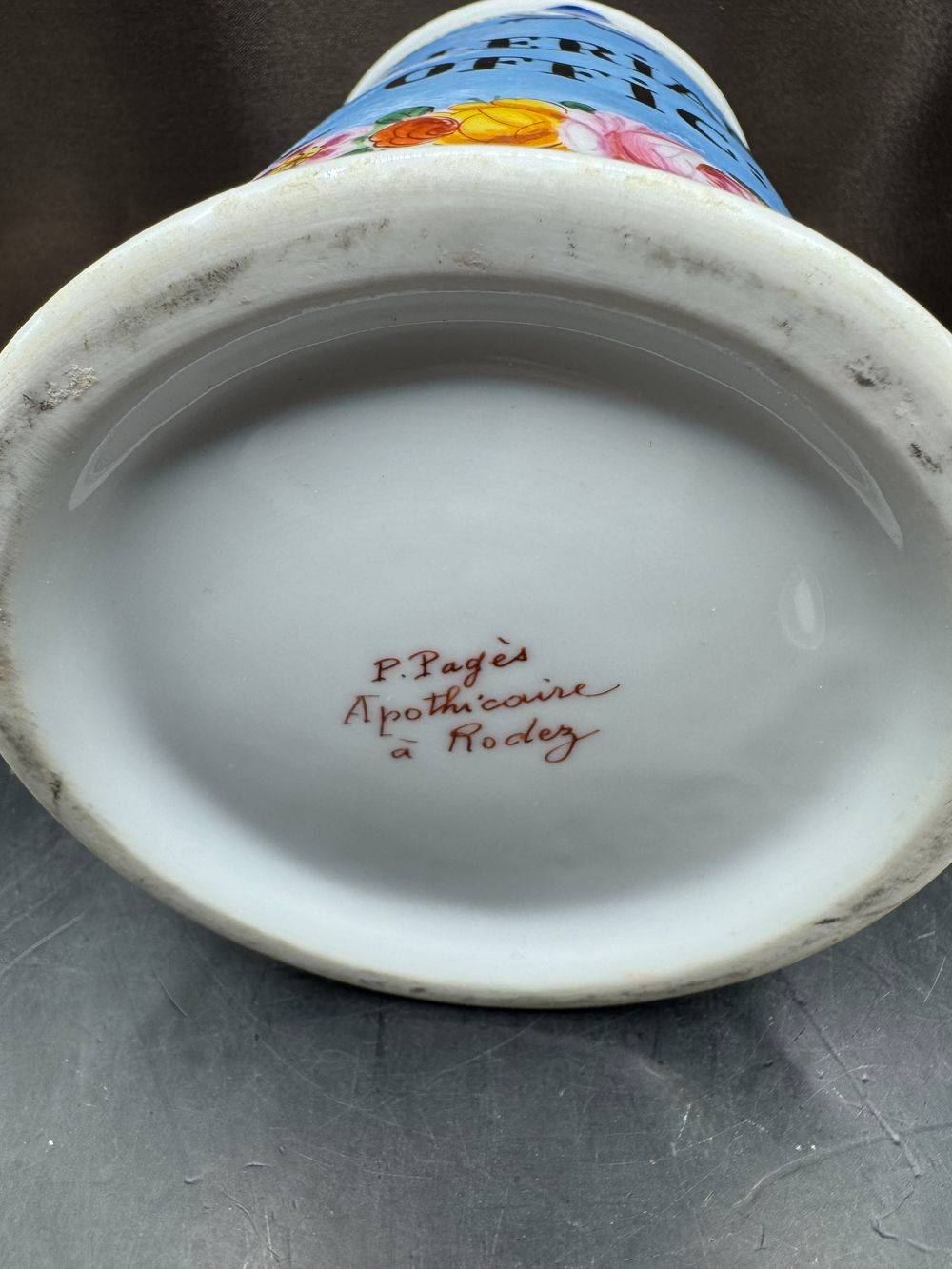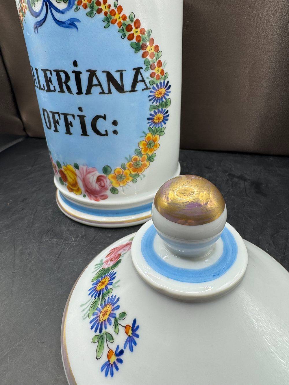 Ancien et rare grand pot à Pharmacie – pot d’Apothicaire – Valeriana Offic – En Porcelaine de Limoges – Décor Floral – P. Pagès, apothicaire à Rodez – Peint à la main – Vers 1950