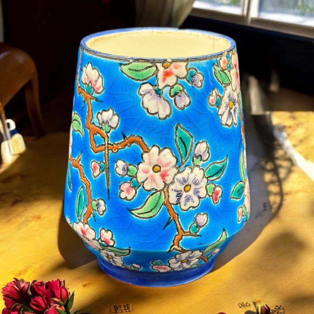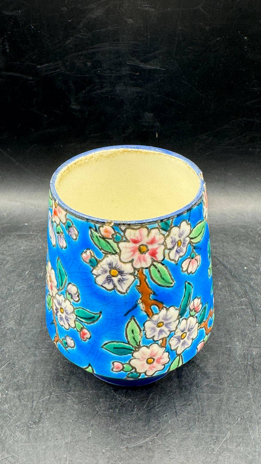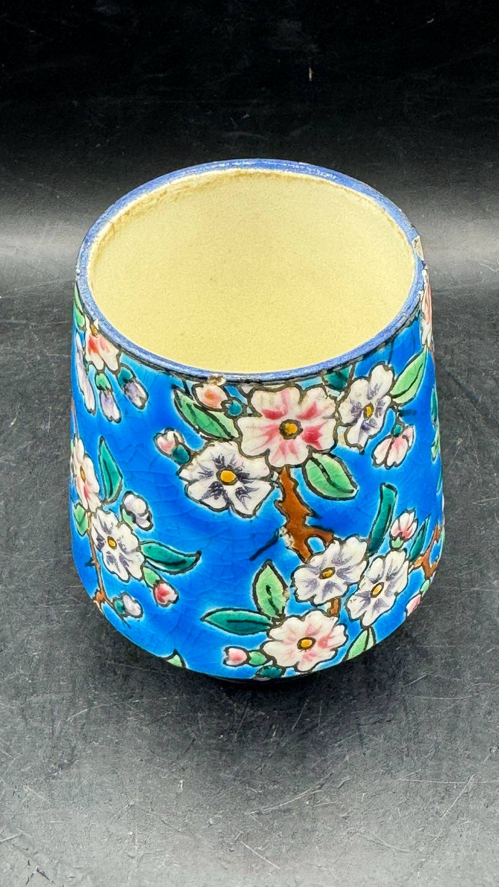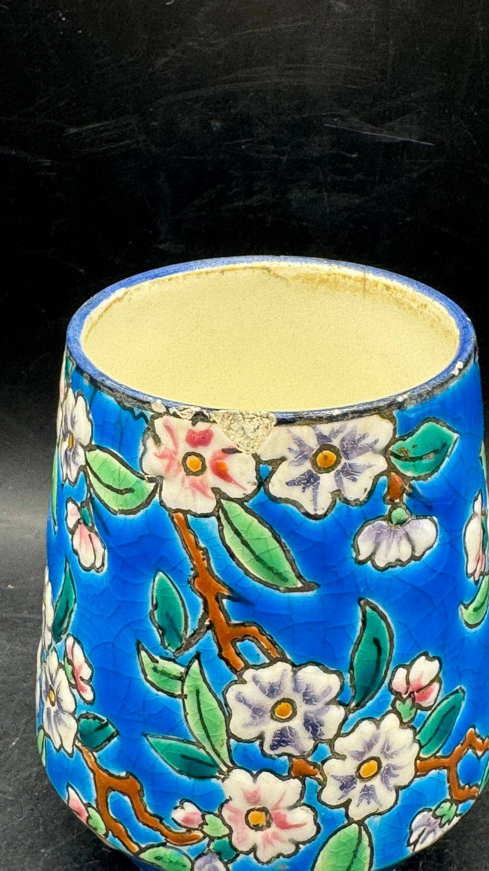 Ancien et rare petit pot en faïence et émaux polychromes de Longwy – Signature des années 1920-1930 – Décoration – Collection