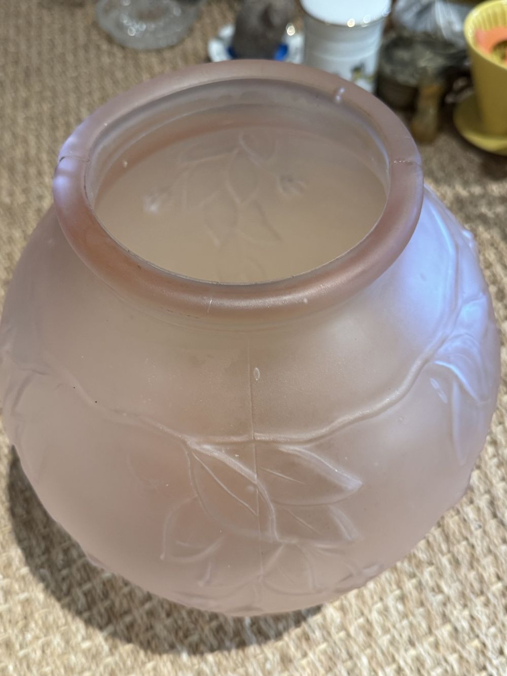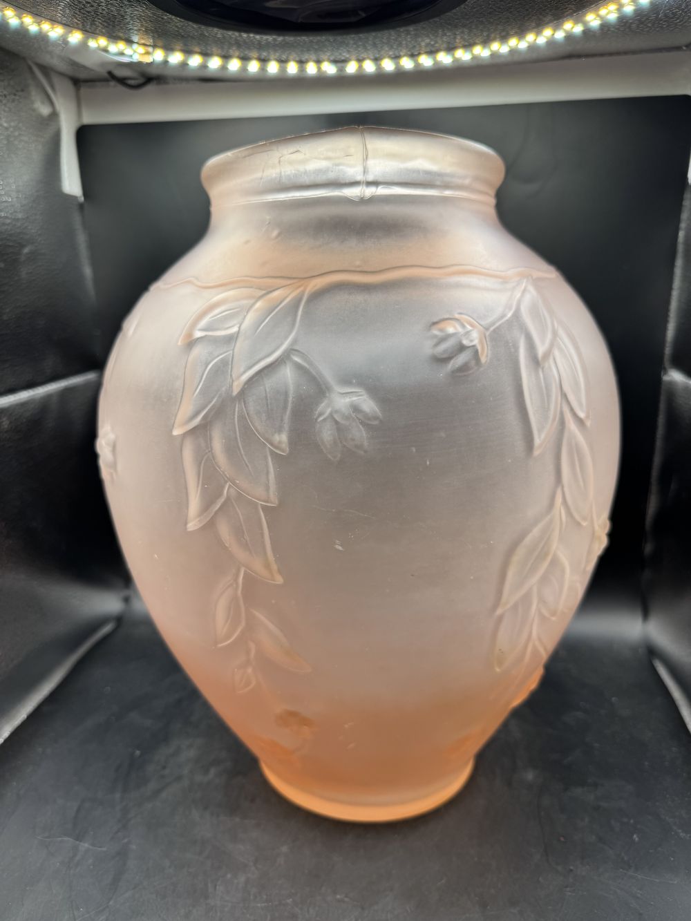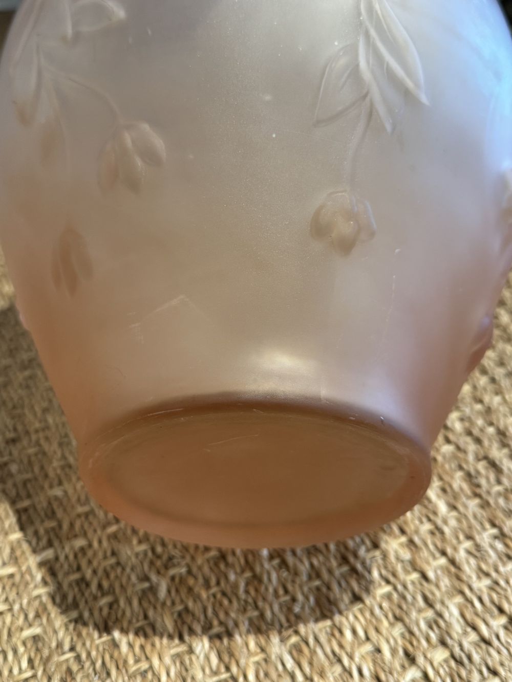 Ancien, rare et superbe grand vase en Pâte de verre rose pâle moulé/pressé dépoli des années 20-30 – Art Déco – Décoration – Collection