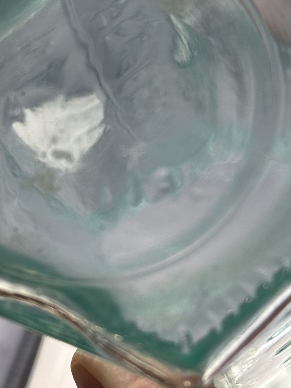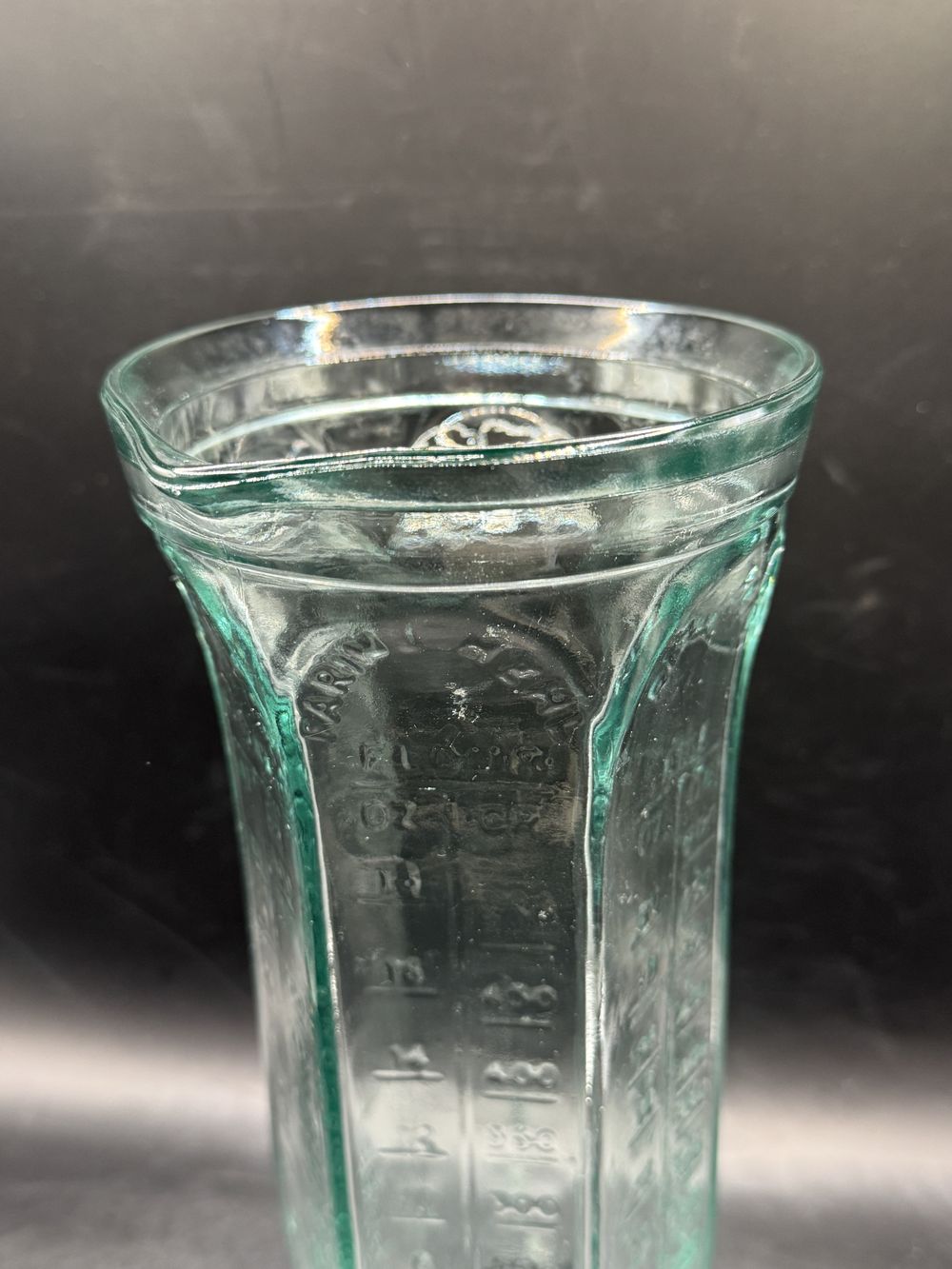 Ancien grand mesureur/doseur (avec bec verseur) en verre moulé (de couleur vert) – Made in Italie – Collection – Décoration – Vintage