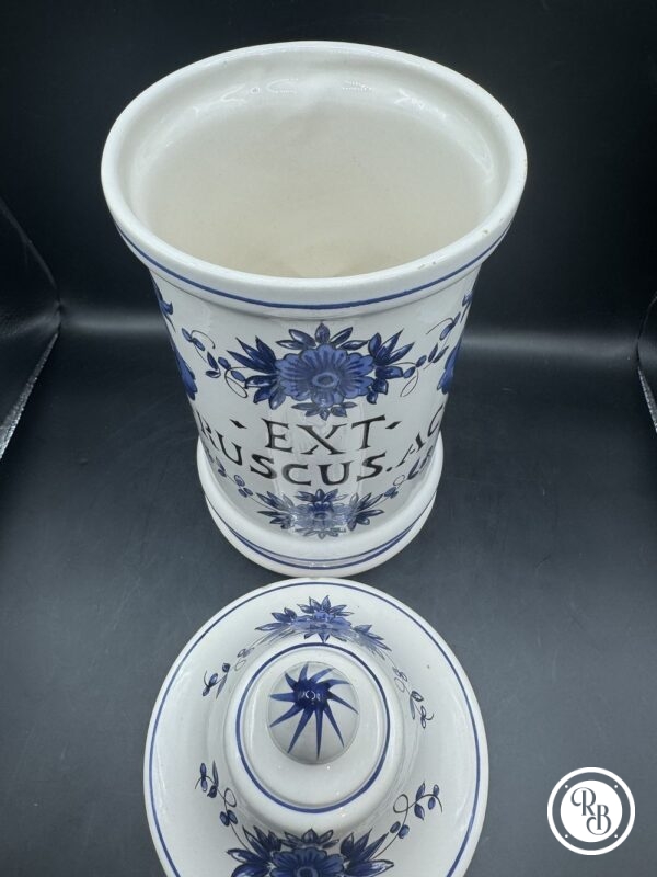 Ancien grand pot à Pharmacie – pot d’Apothicaire en faïence – Extrait Ruscus.AC – St Clément – Collection
