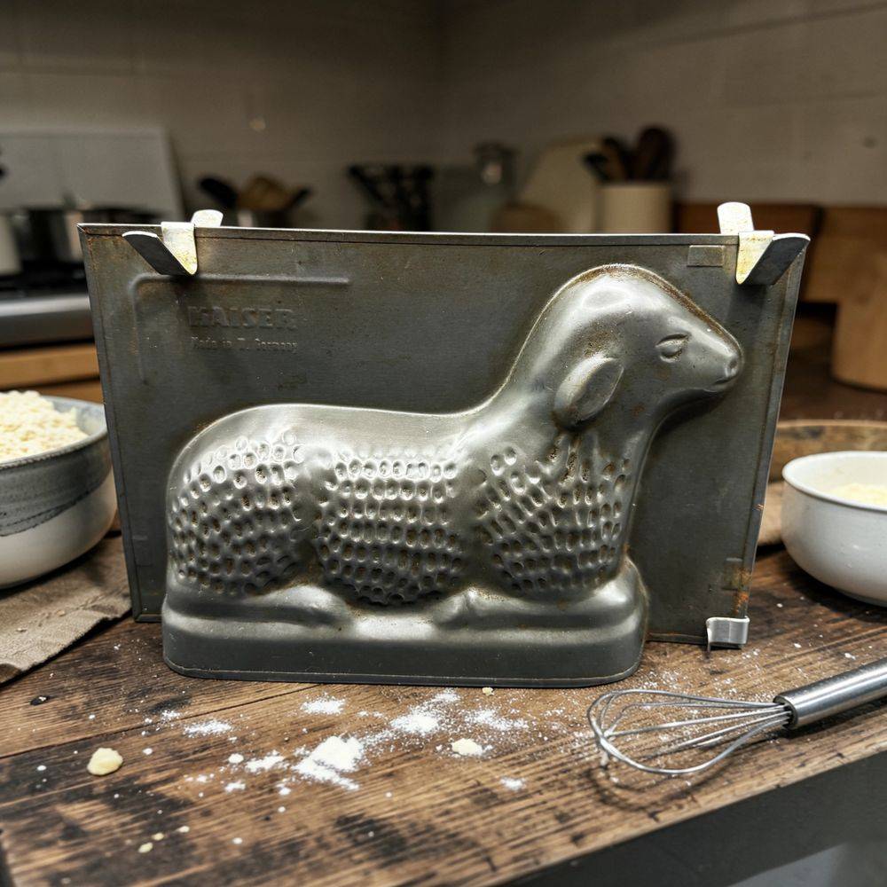 Ancien moule à chocolat en métal Mouton – Estampillé » Kaiser – Made in Germany » sur les des deux parties – Collection – Déco – Pâques