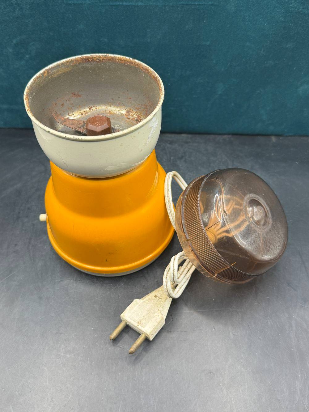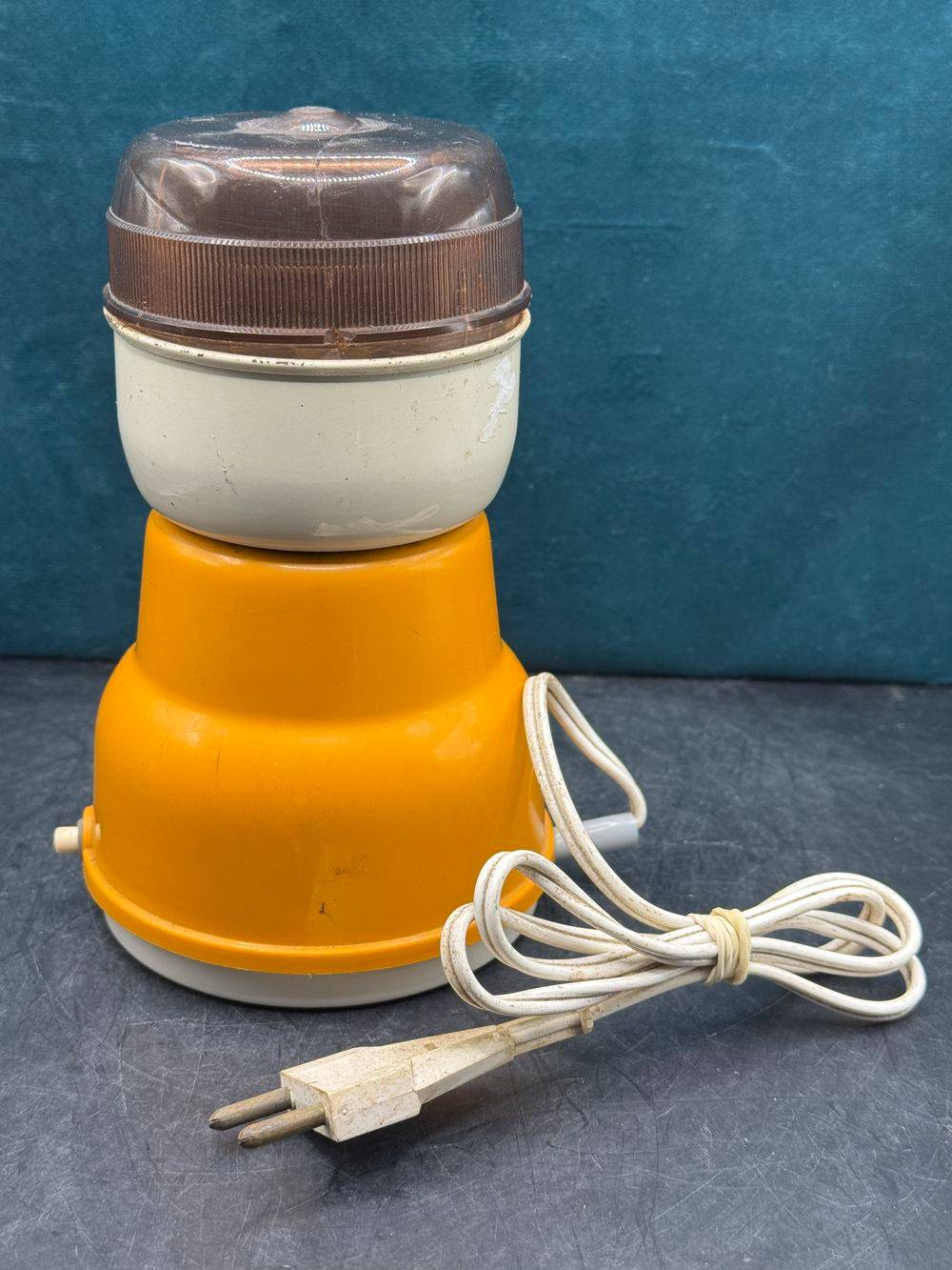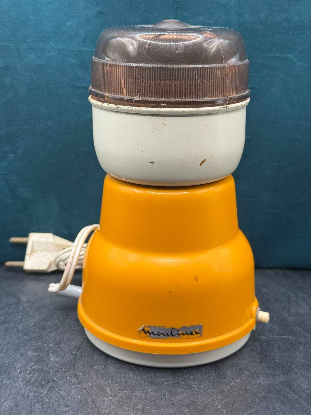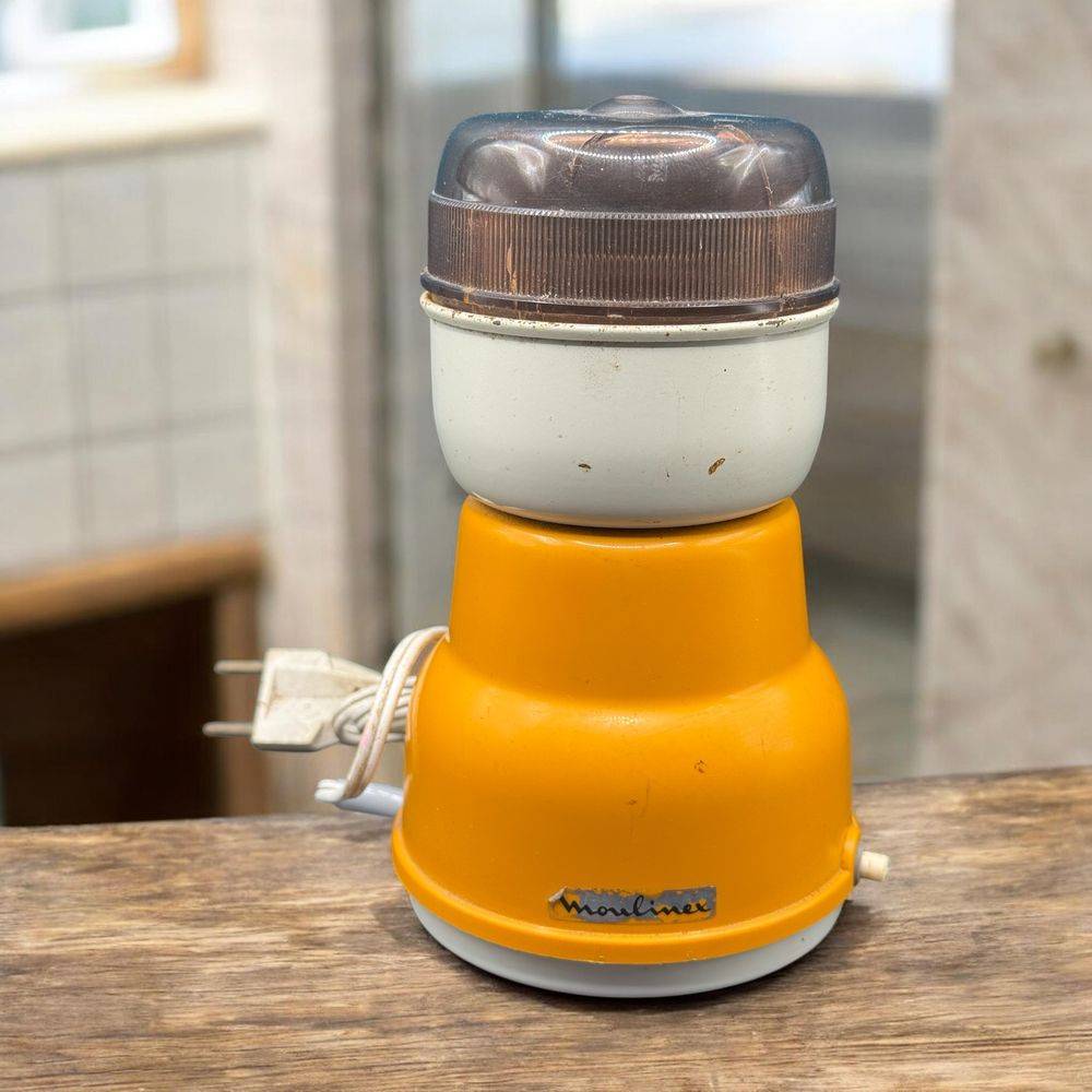 Ancien moulin à café électrique orange – Type 255 de chez Moulinex – Vers 1970 – Made in France – Collection – Décoration – Vintage