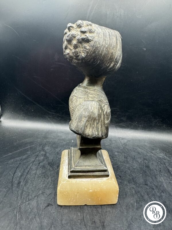 Ancien petit buste de femme en bronze sur son socle en pierre – Décoration – Collection
