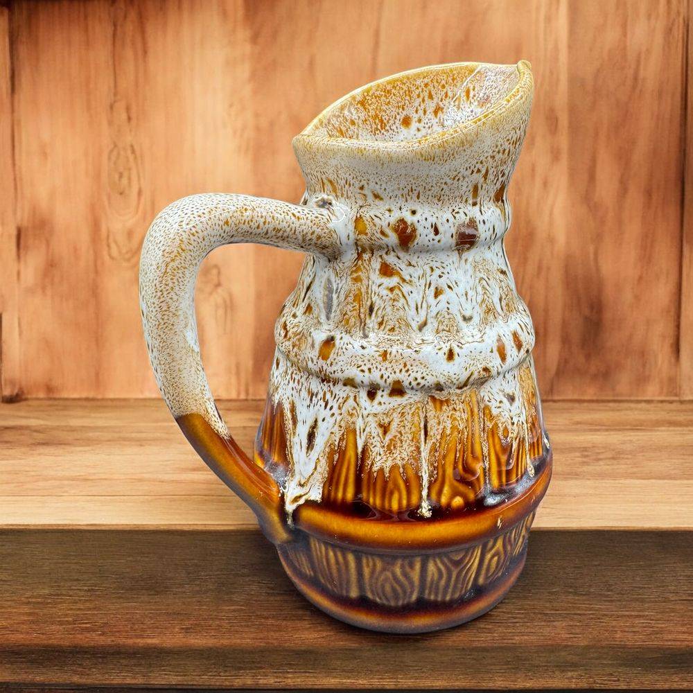 Ancien Pichet en grès flammé – 1/2 litre – En forme de petit tonneau – Circa 1970 – Décoration bar bistrot – Collection – Vintage