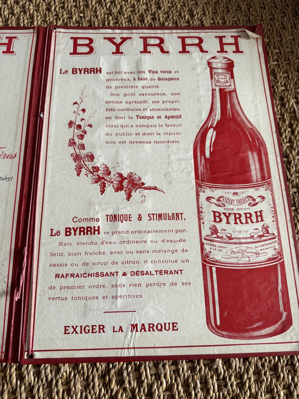 Ancien Porte-menu Publicitaire BYRRH – Vin Généreux au Quinquina
