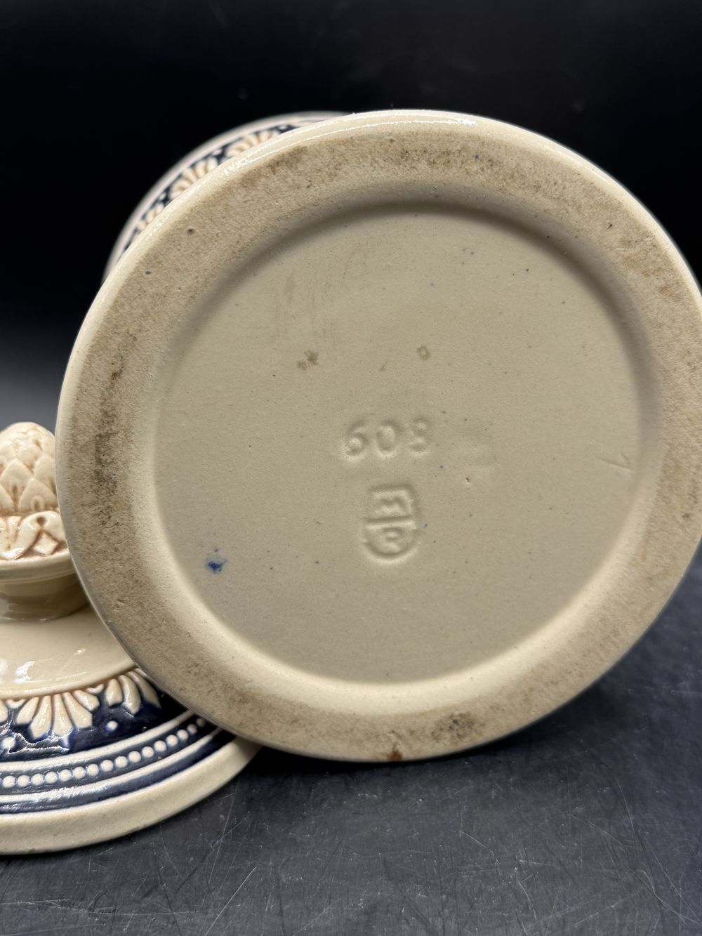 Ancien Pot à tabac en grès et son couvercle de la fameuse manufacture Allemande Marzi et Rémy