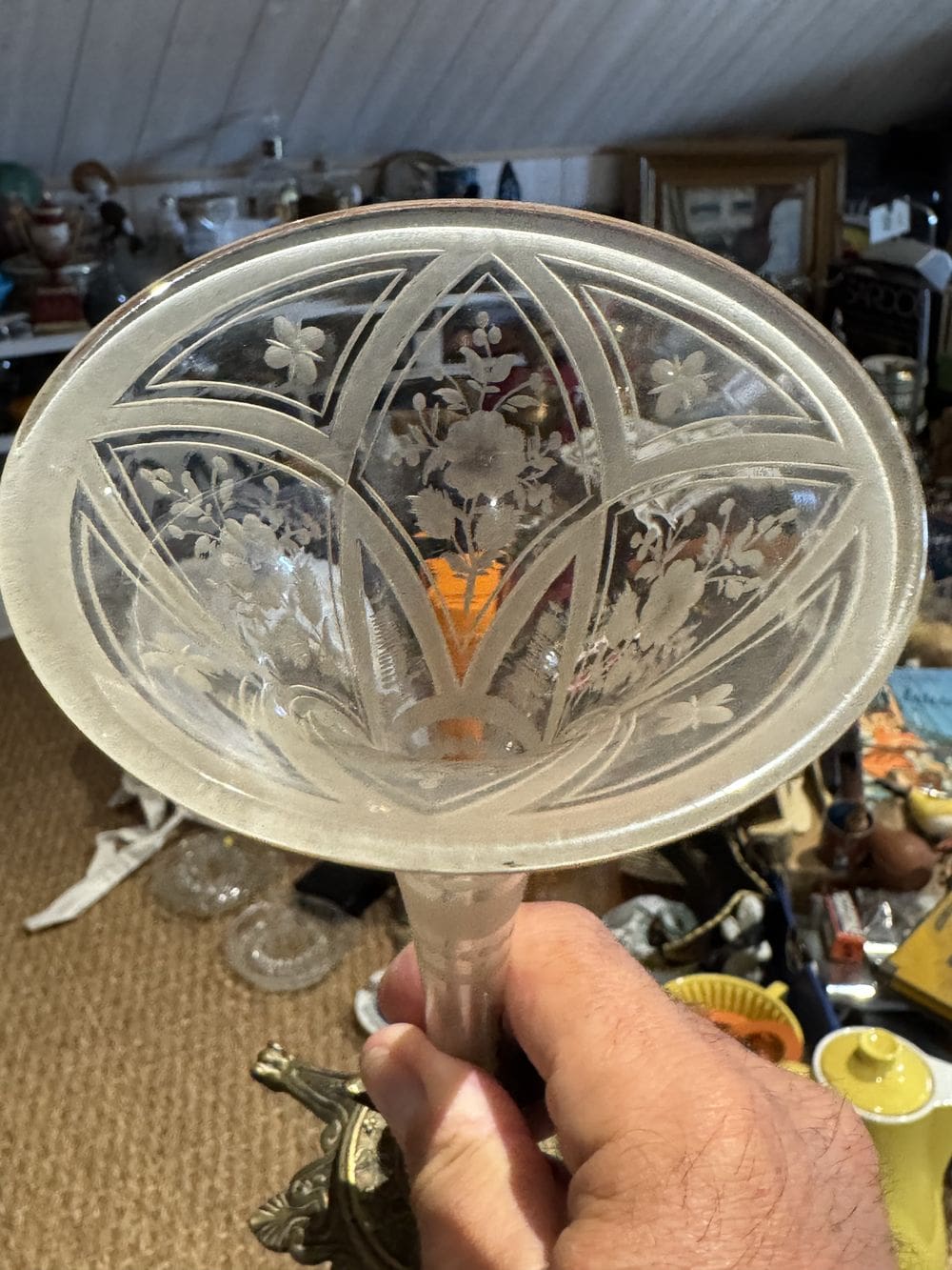 Ancien Vase cornet et verre en cristal gravé sur piètement en bronze doré datant du 19ème – Collection – Décoration
