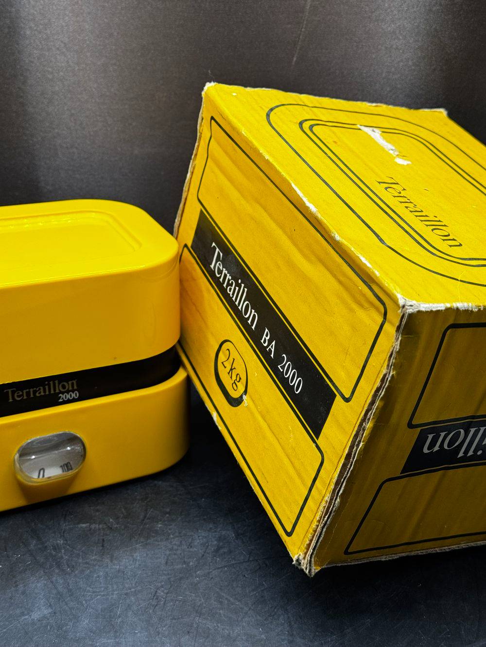 Ancienne balance mécanique Terraillon jaune 2000 (et sa boite d’origine) datant des années 70 – Fabrication made in France