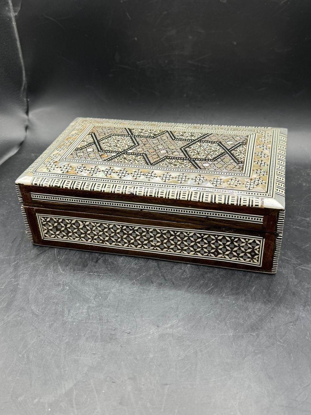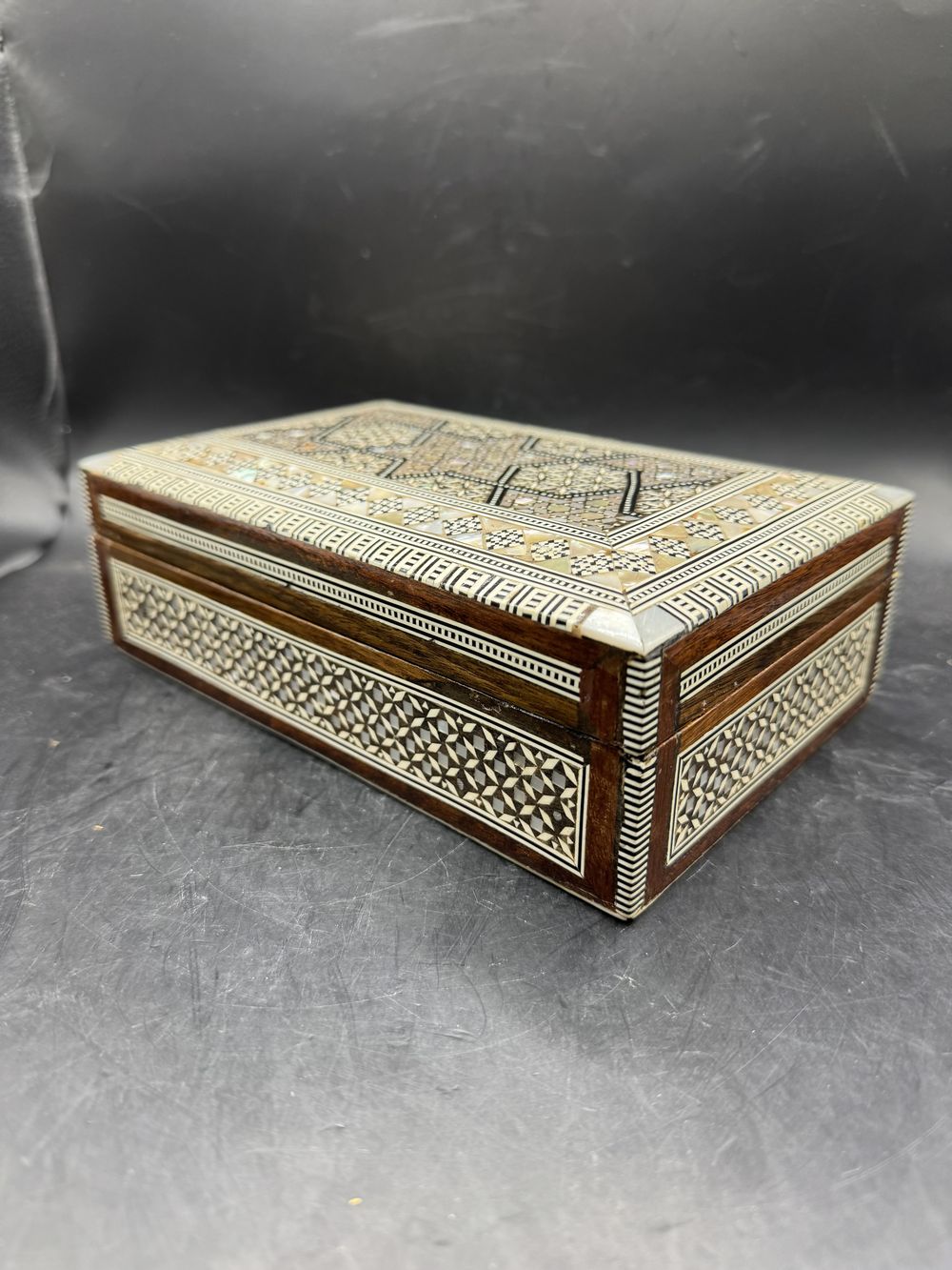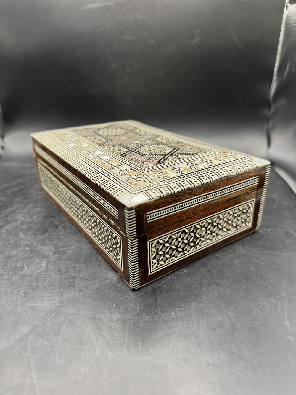Ancienne Boîte à bijoux en mosaïque et marqueterie de nacre – Velour à l’intérieur – Moyen Orient Syrie – Déco – Collection