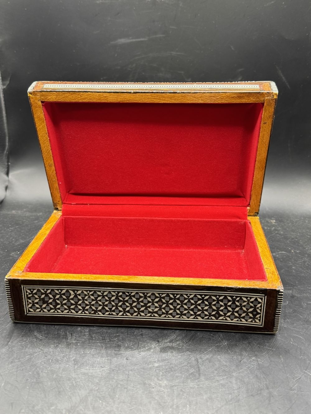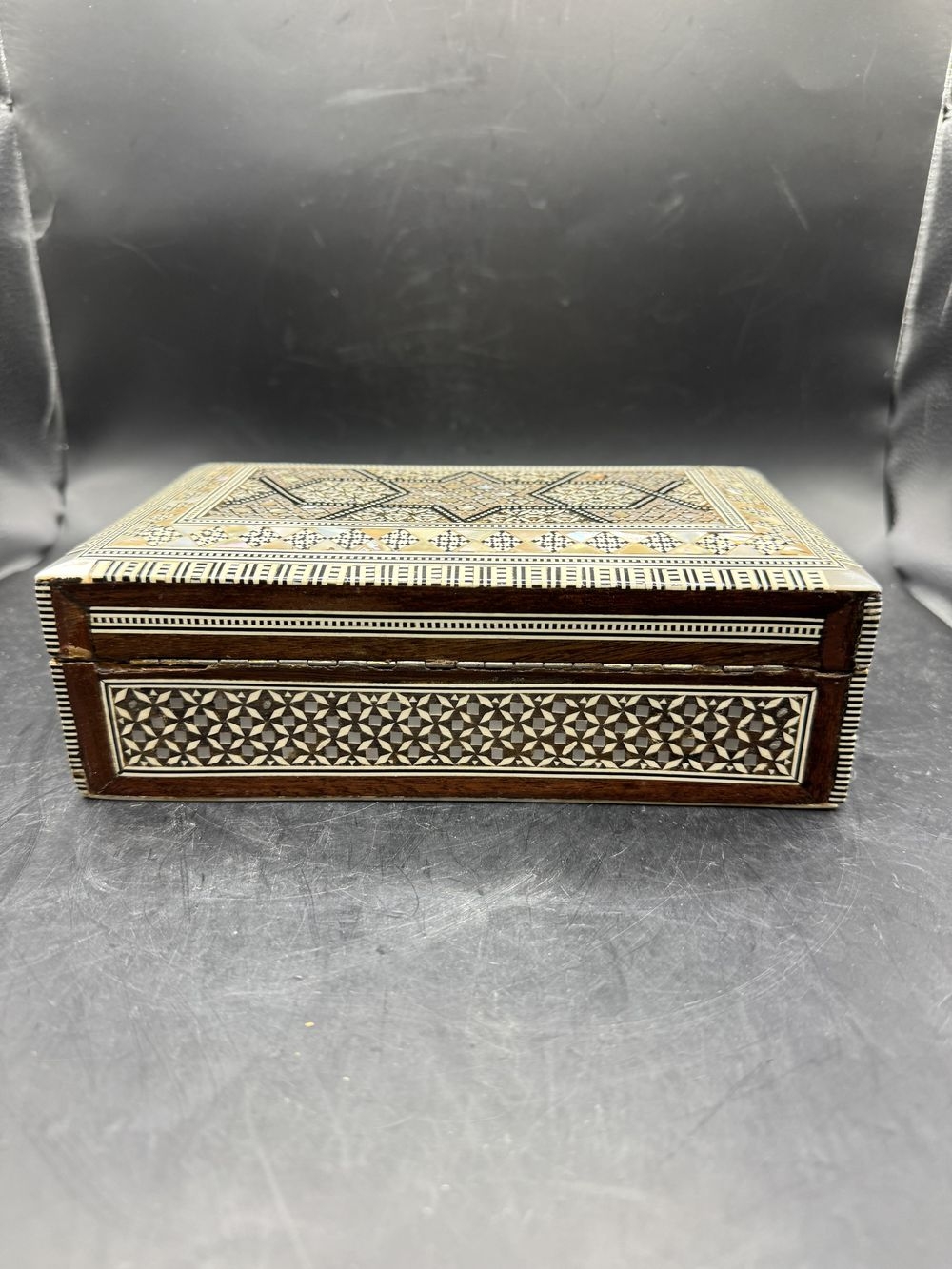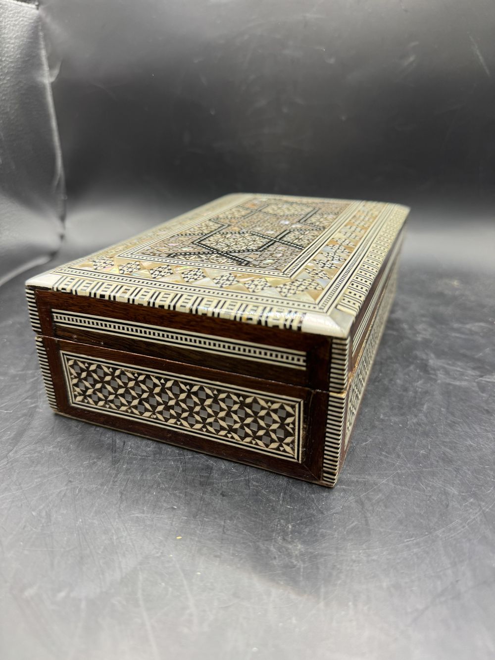 Ancienne Boîte à bijoux en mosaïque et marqueterie de nacre – Velour à l’intérieur – Moyen Orient Syrie – Déco – Collection