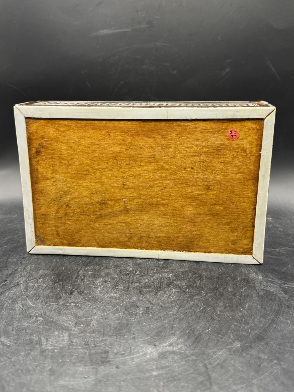 Ancienne Boîte à bijoux en mosaïque et marqueterie de nacre – Velour à l’intérieur