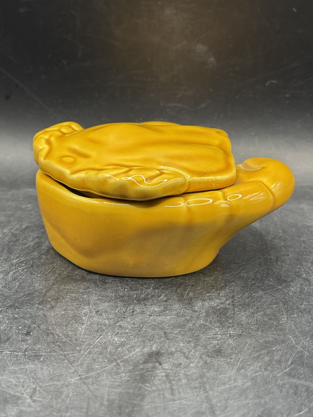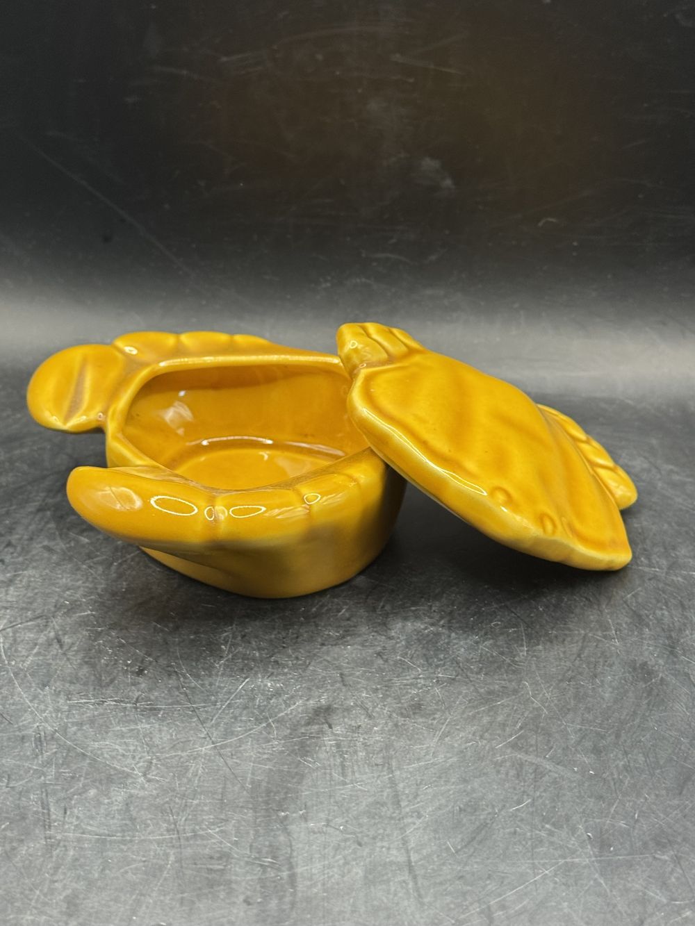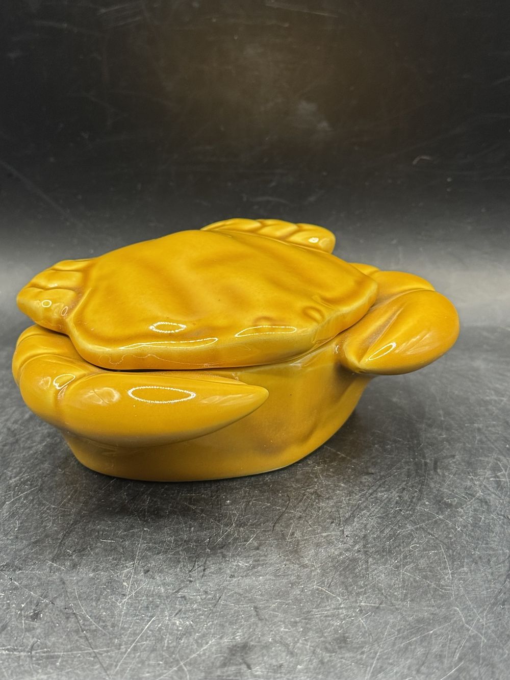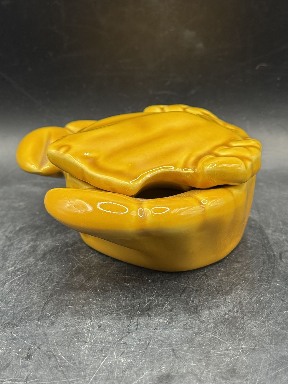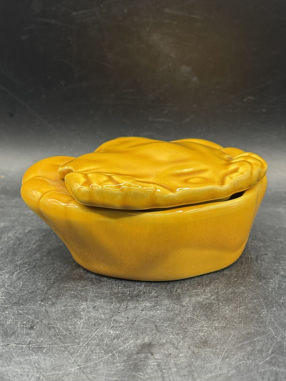 Ancienne Boite à bijou /Petite bonbonnière en forme de Crabe – Céramique jaune – Objet de curiosité – Vintage – Bord de Mer – Déco – Collection