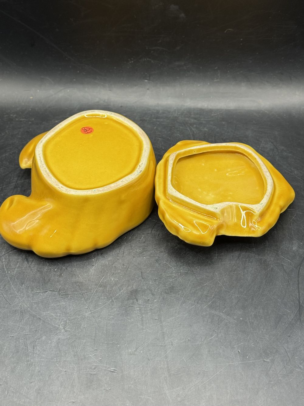 Ancienne Boite à bijou /Petite bonbonnière en forme de Crabe – Céramique jaune – Objet de curiosité des années 1970