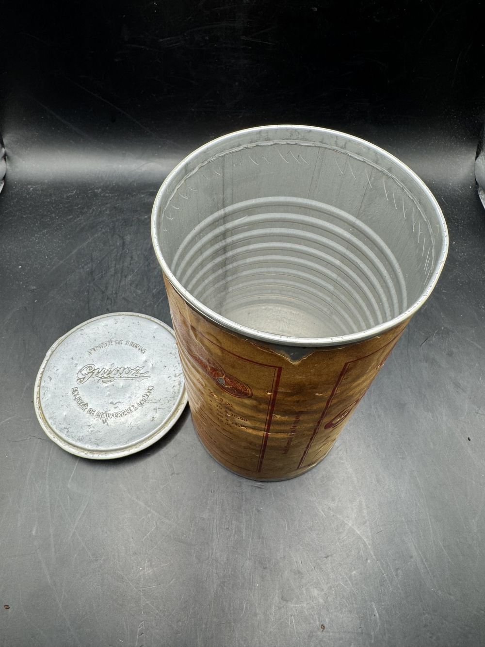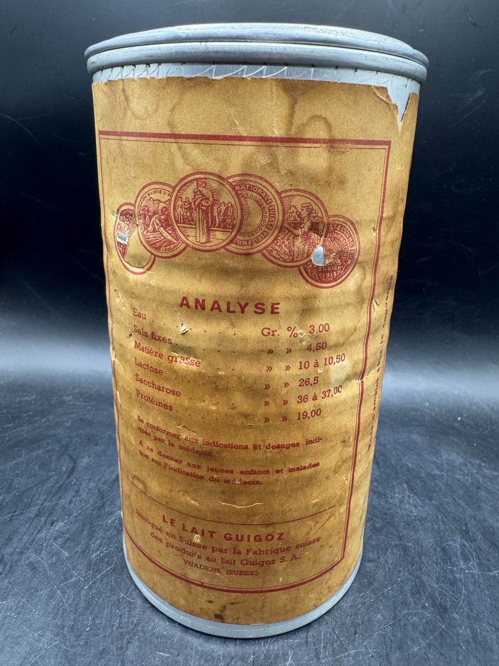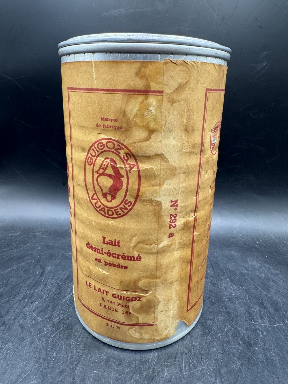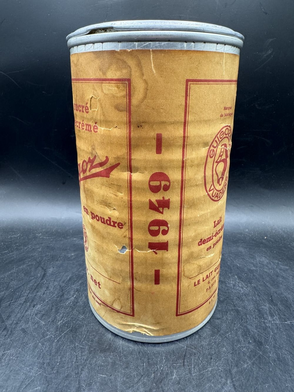 Ancienne boite – publicitaire – En aluminium de 500g – Lait Guigoz – de 1949 – lait sucré demi écrémé