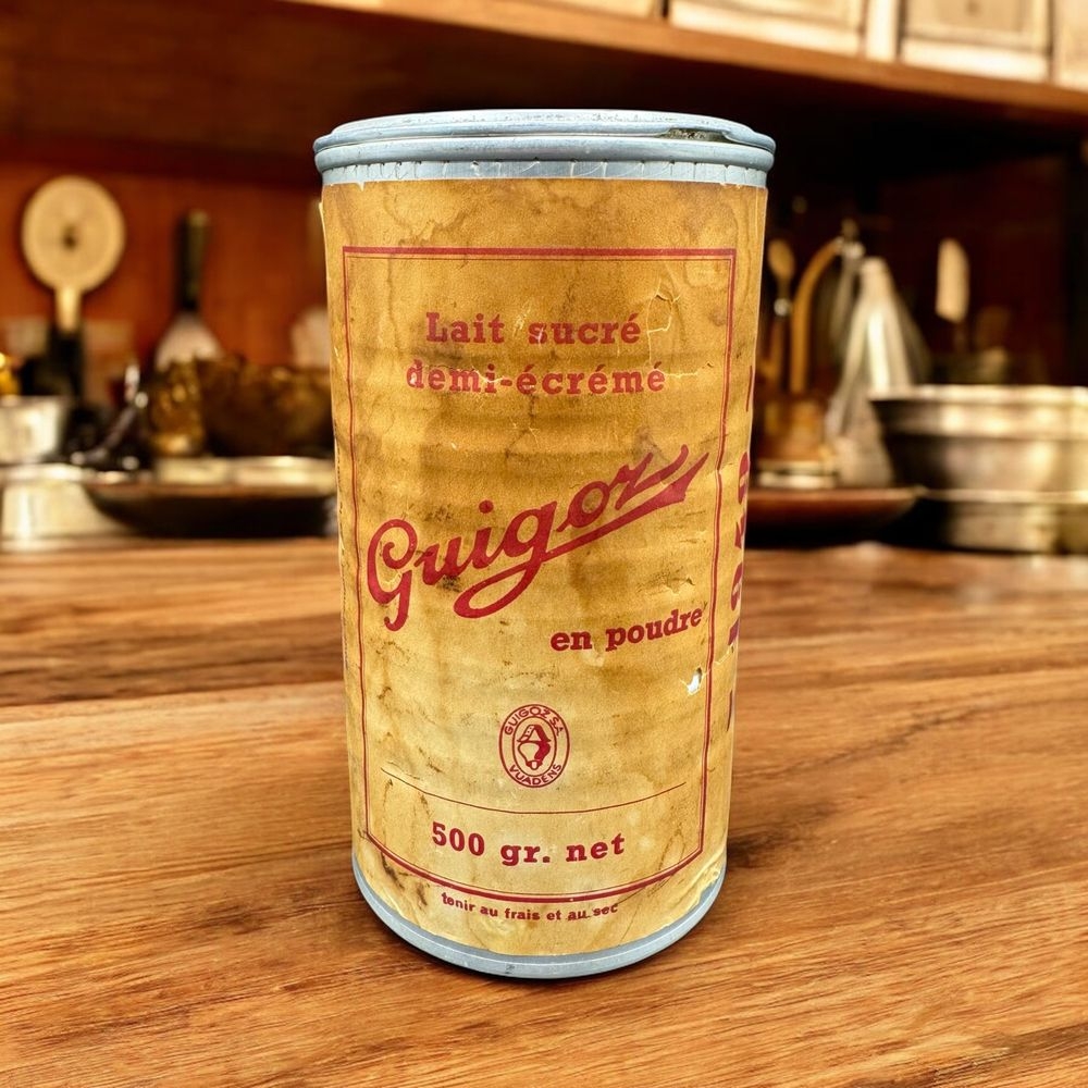 Ancienne boite – publicitaire – En aluminium de 500g – Lait Guigoz – de 1949 – Déco – Collection – lait sucré demi écrémé