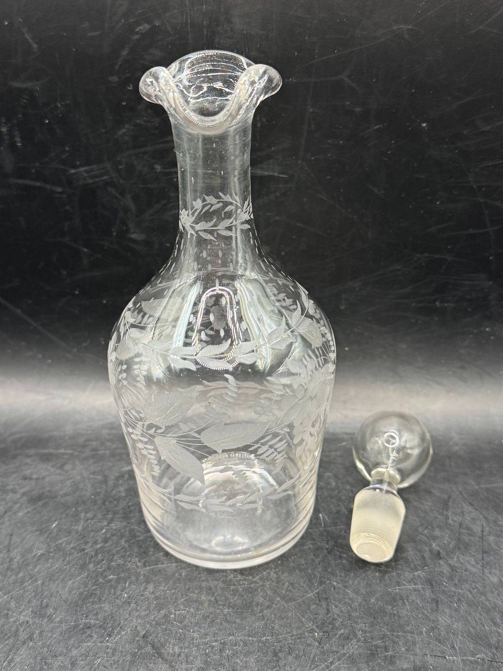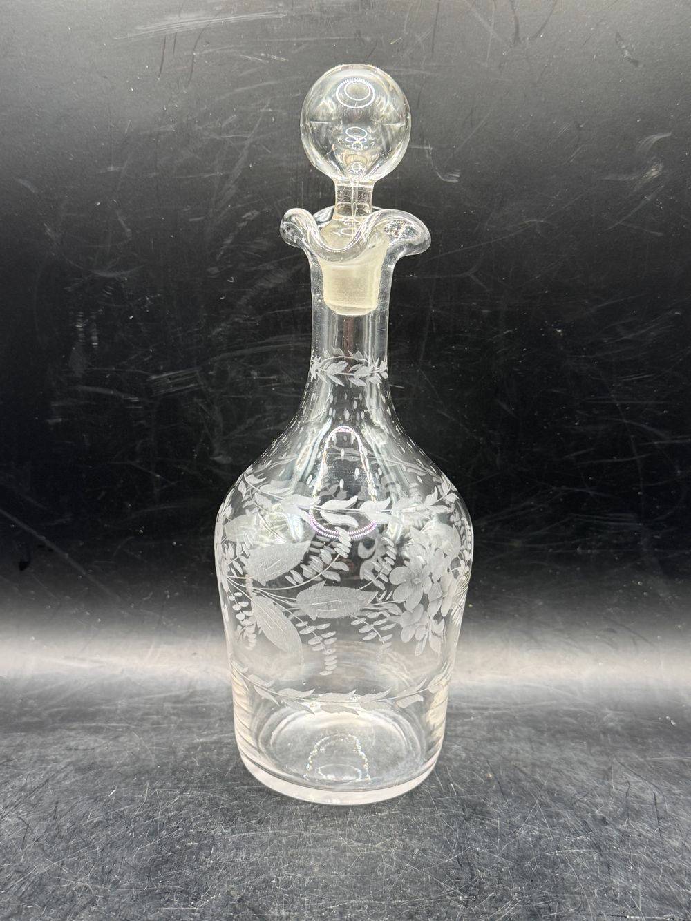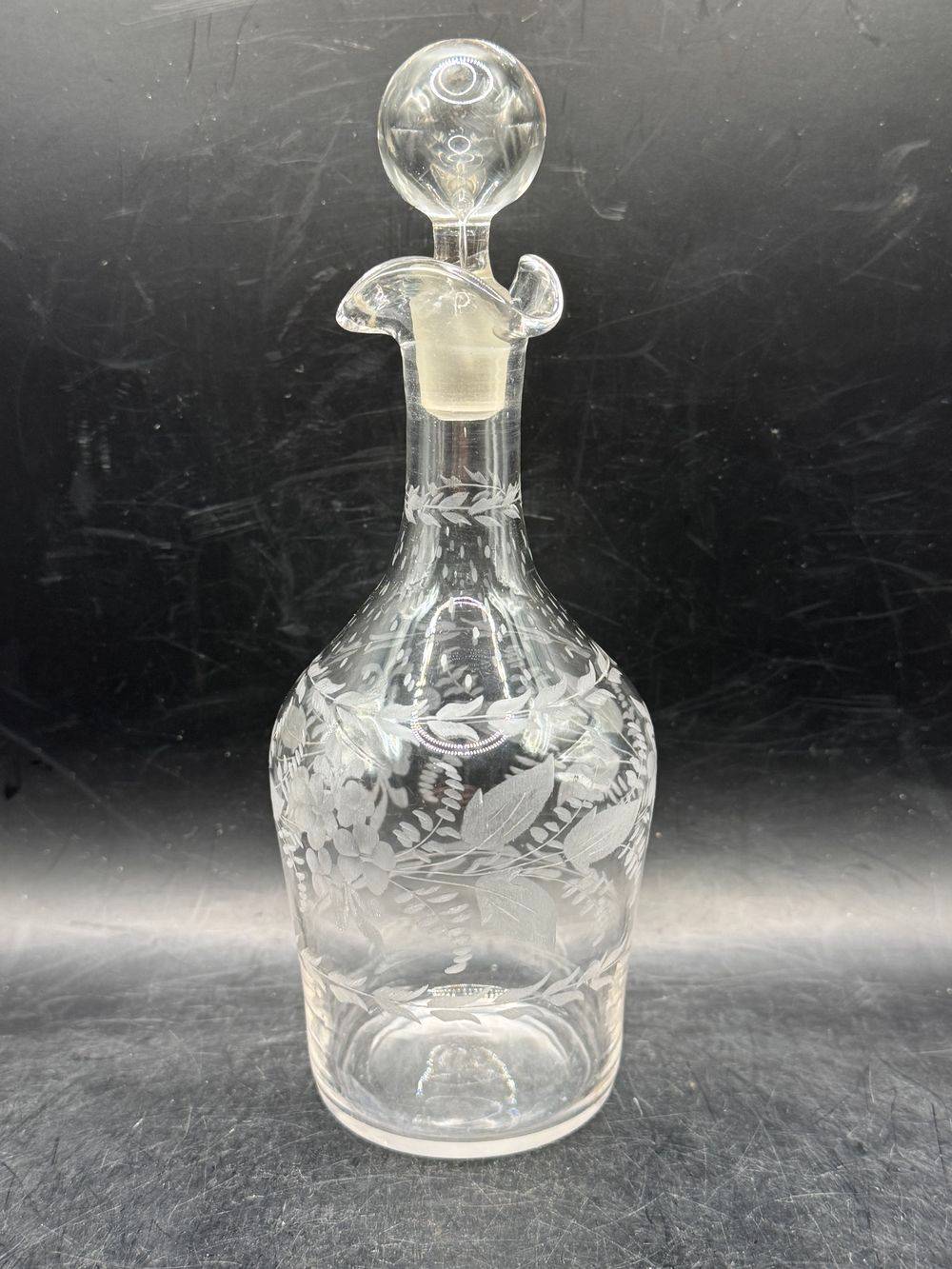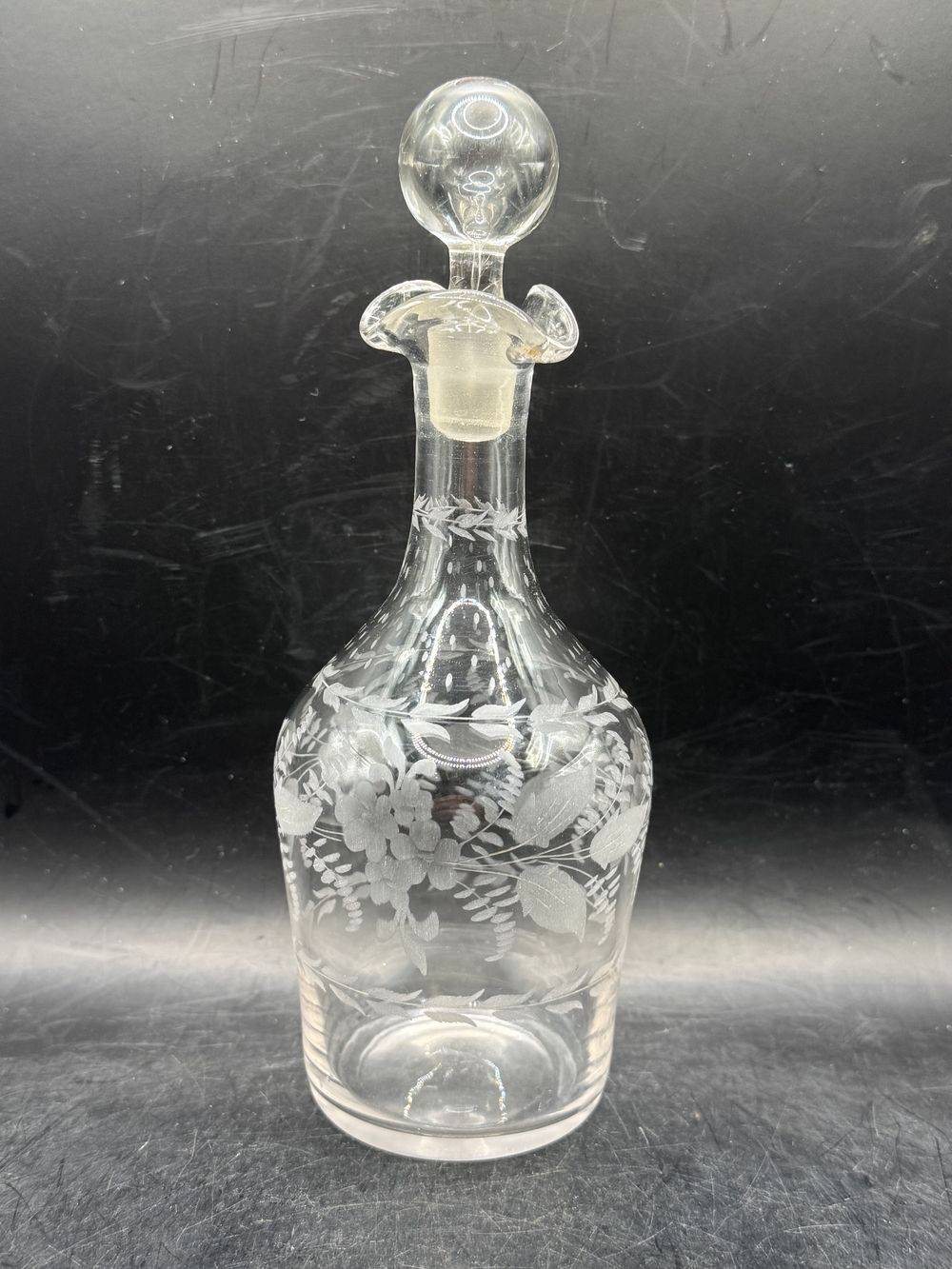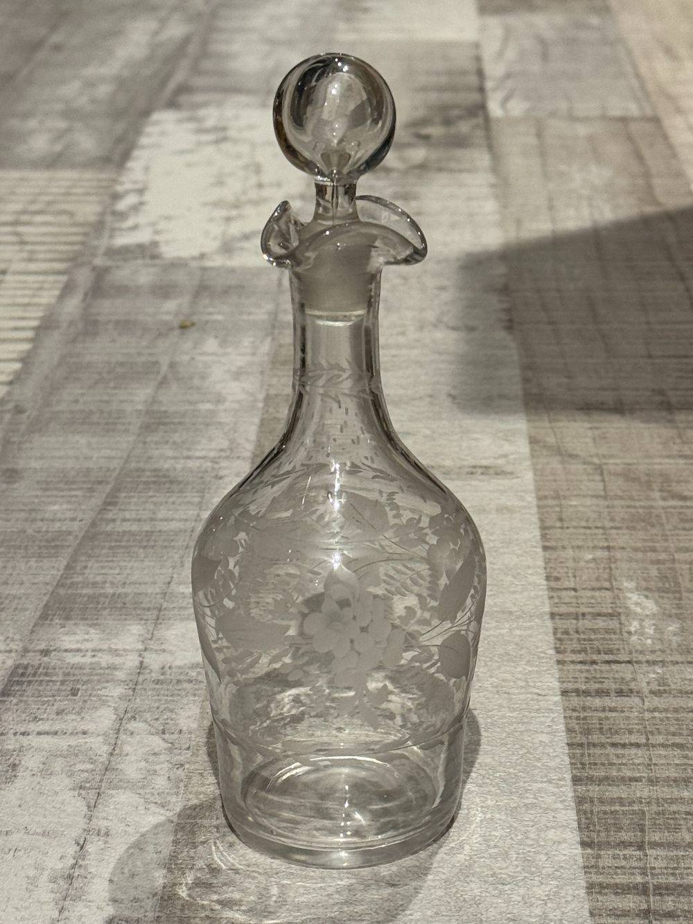Ancienne Carafe Fiole à liqueurs en cristal blanc – Décor Gravé