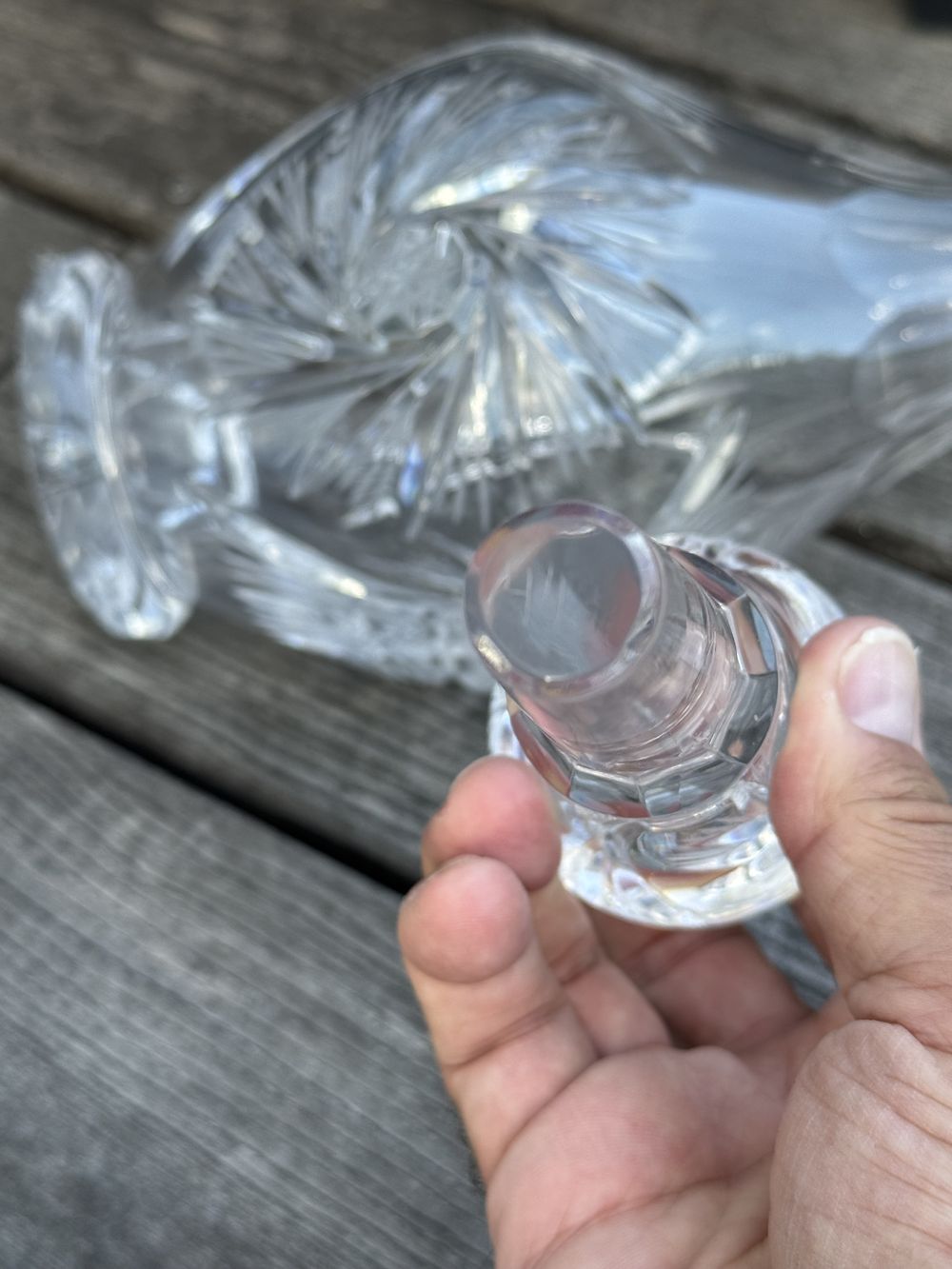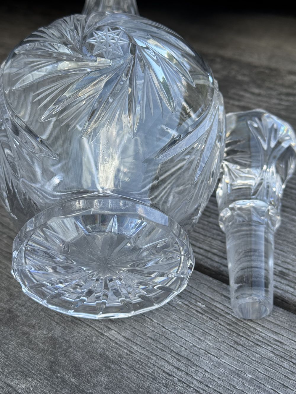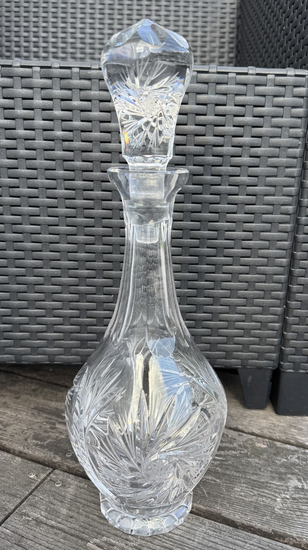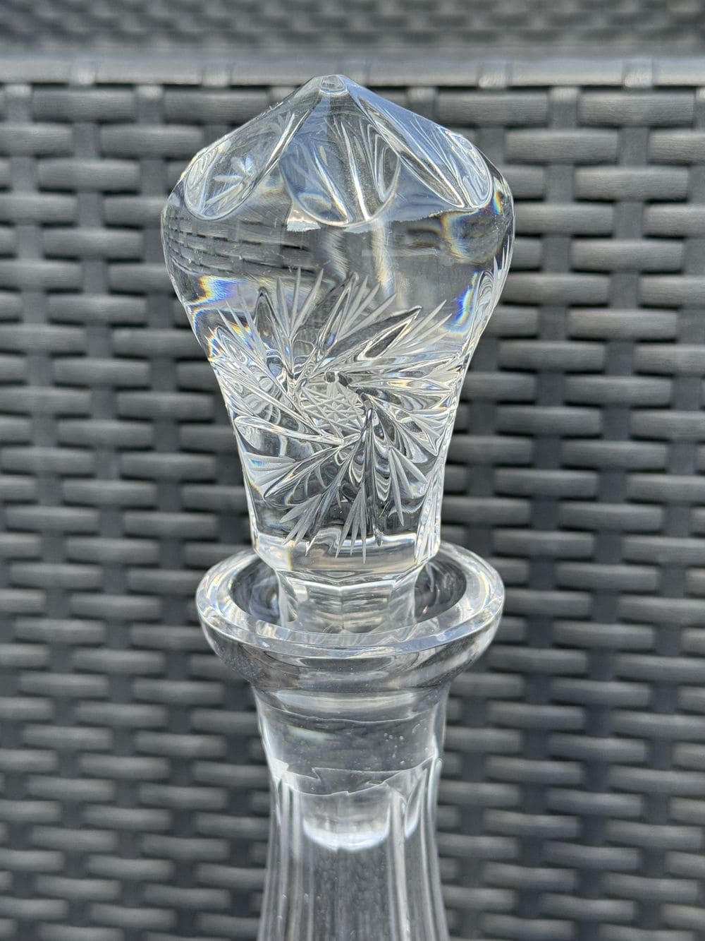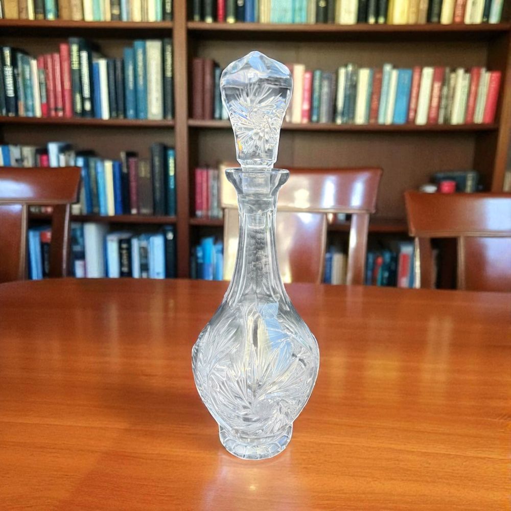 Ancienne et imposante Carafe à décanter en Cristal de Bohème et son incroyable bouchon – L’ensemble est taillé et poli magnifiquement à la main – Collection – Décoration