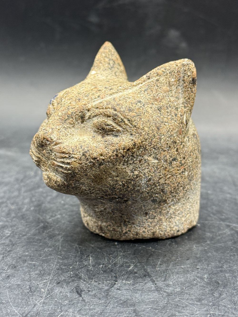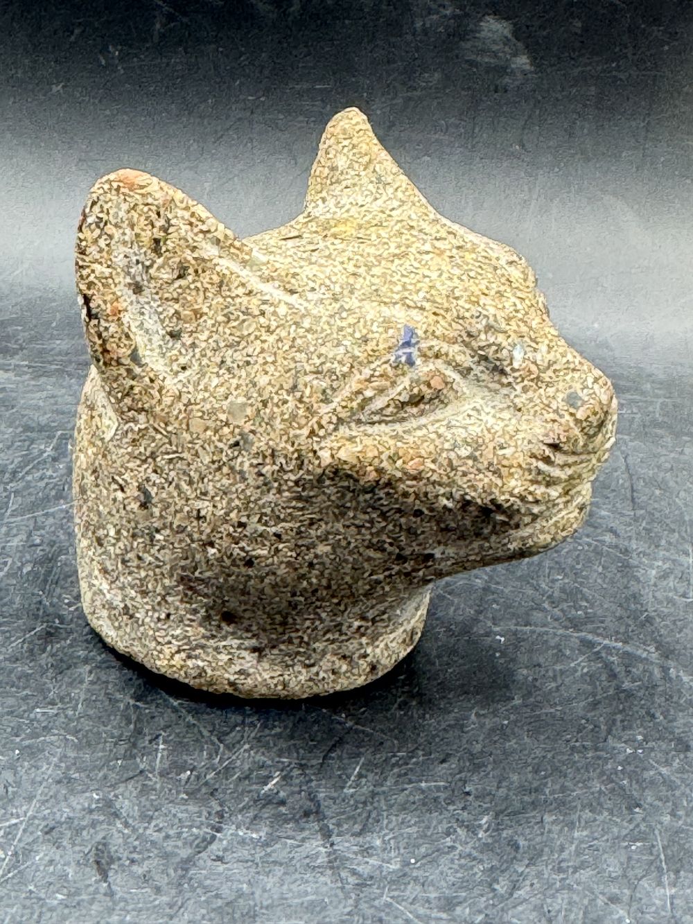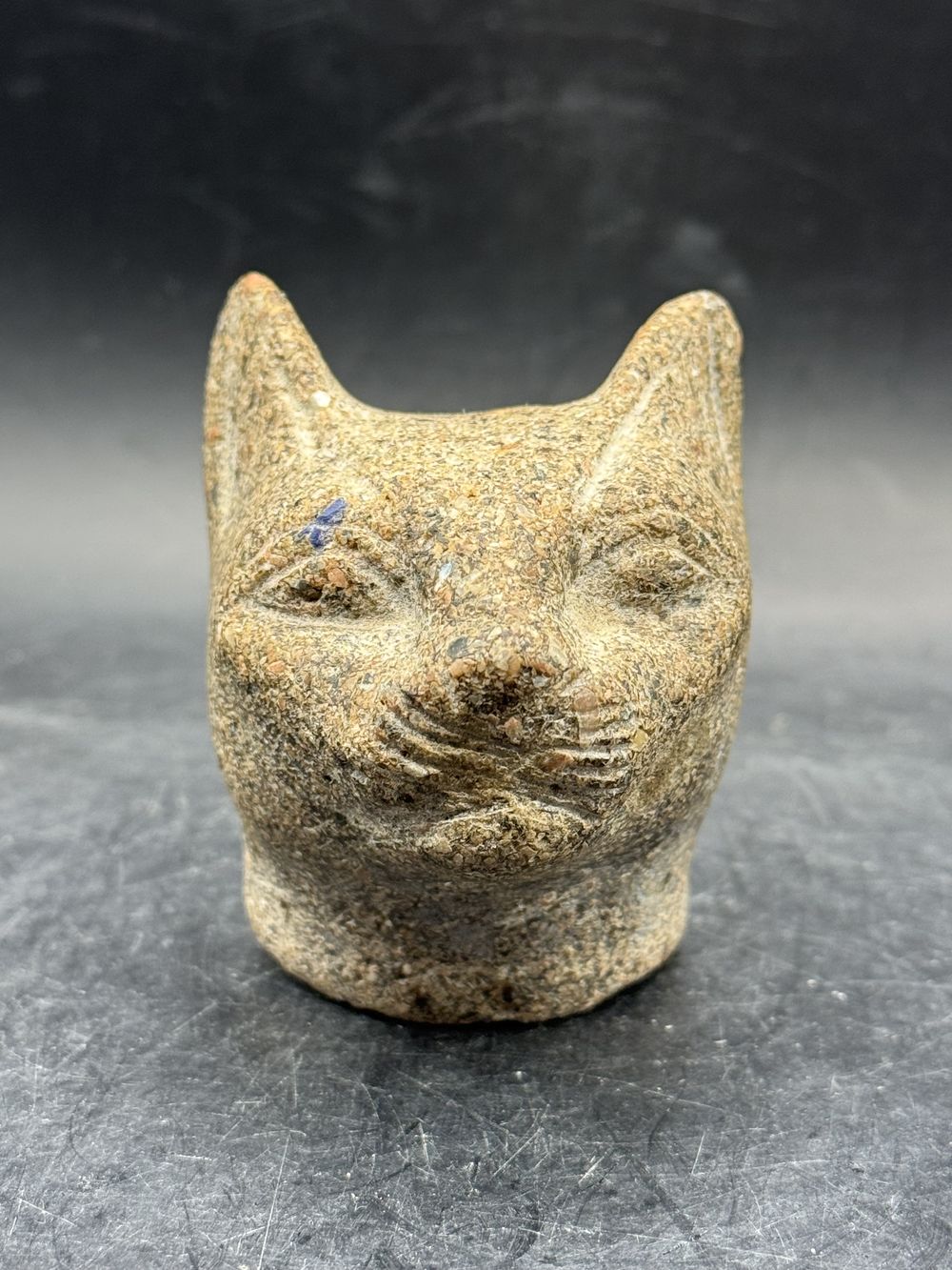 Ancienne et unique sculpture de tête de chat en grès – Déesse Egyptienne Bastet