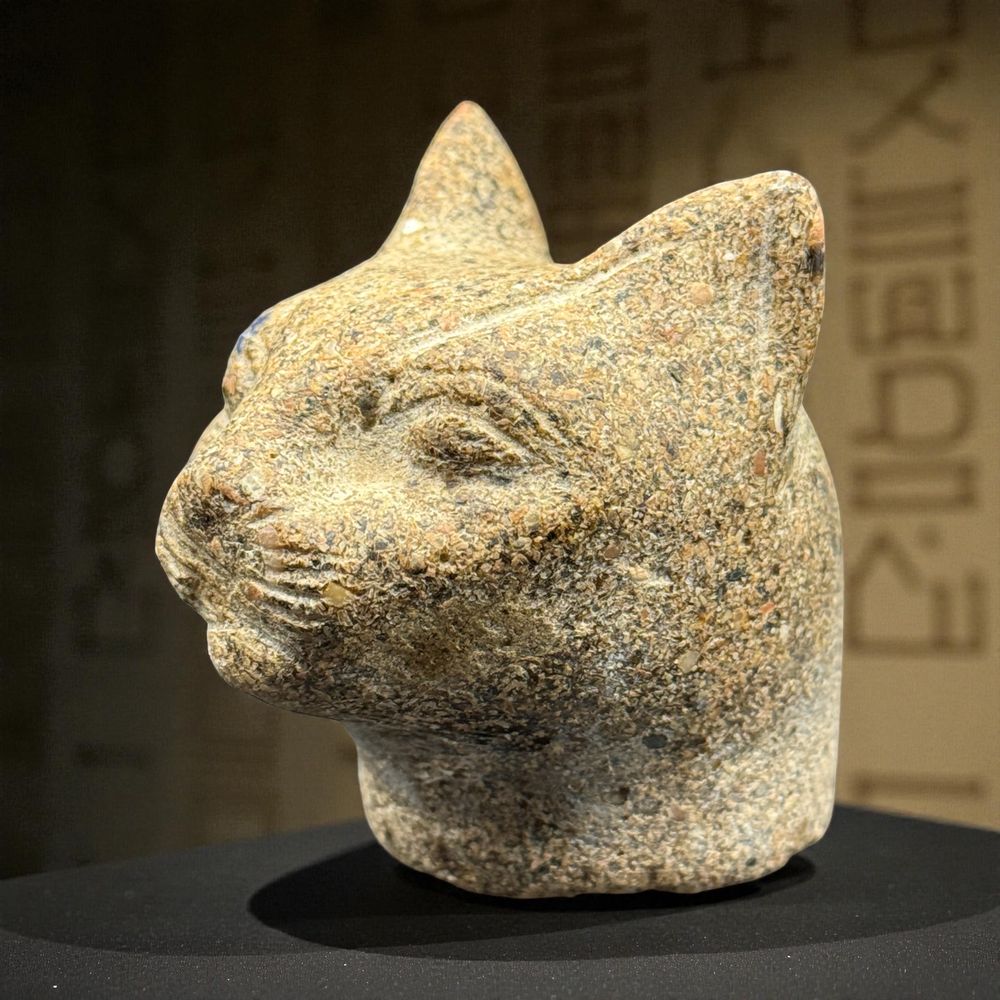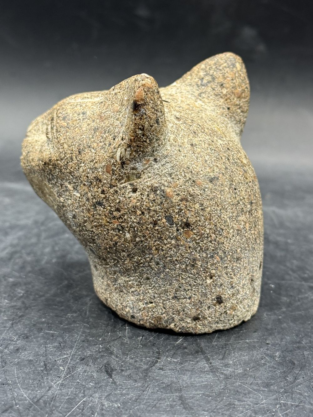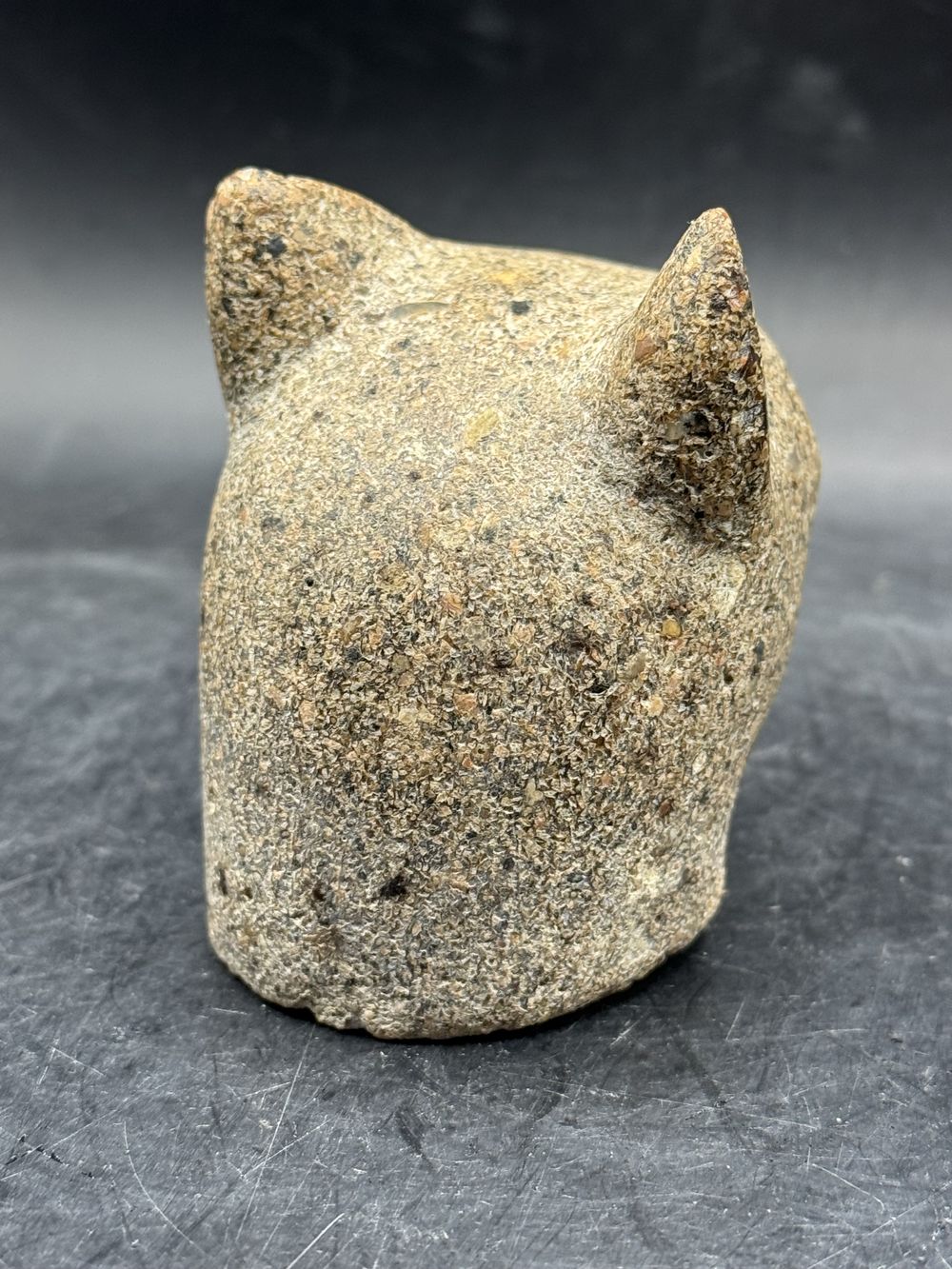 Ancienne et unique sculpture de tête de chat en grès – Déesse Egyptienne Bastet