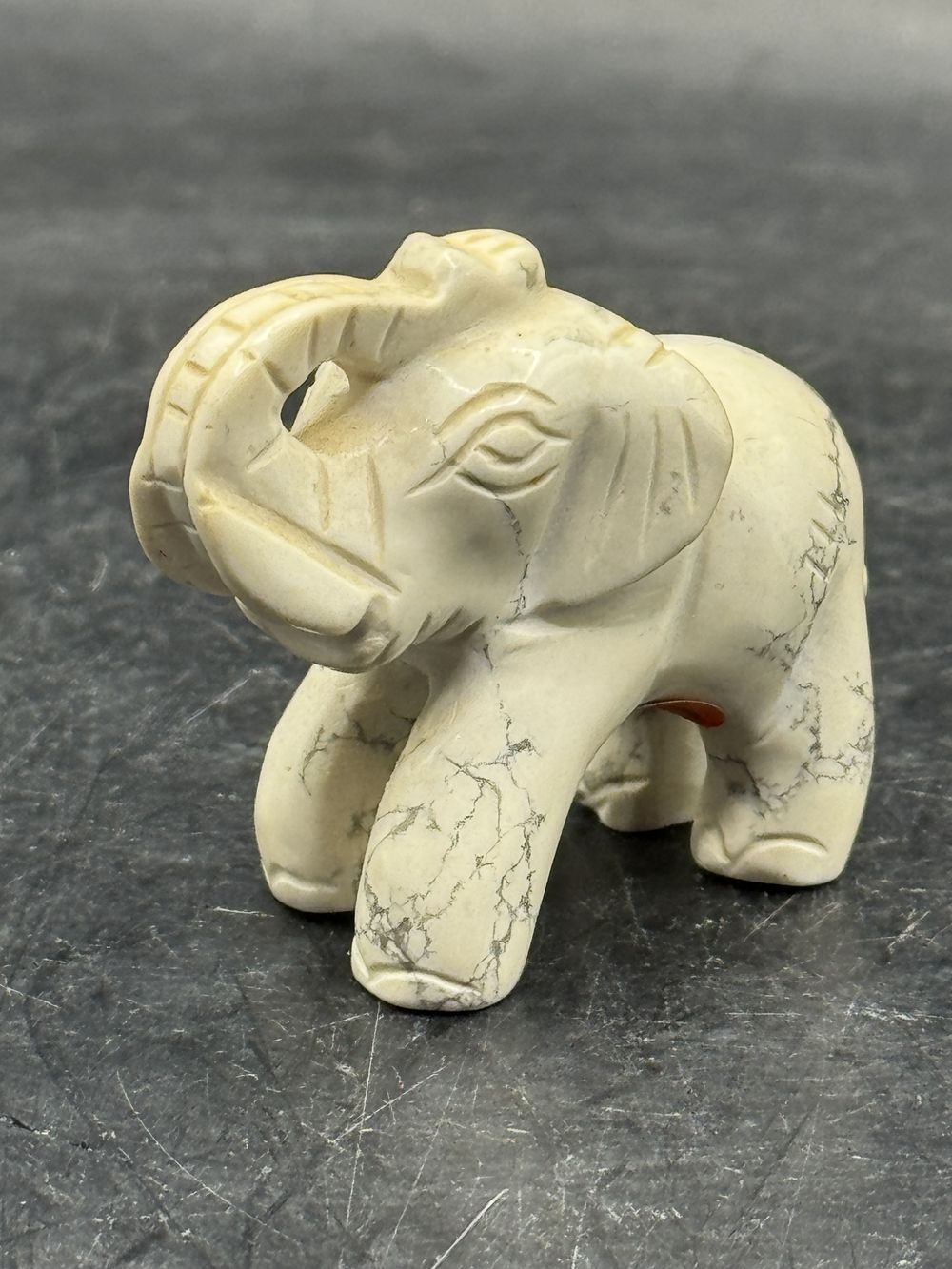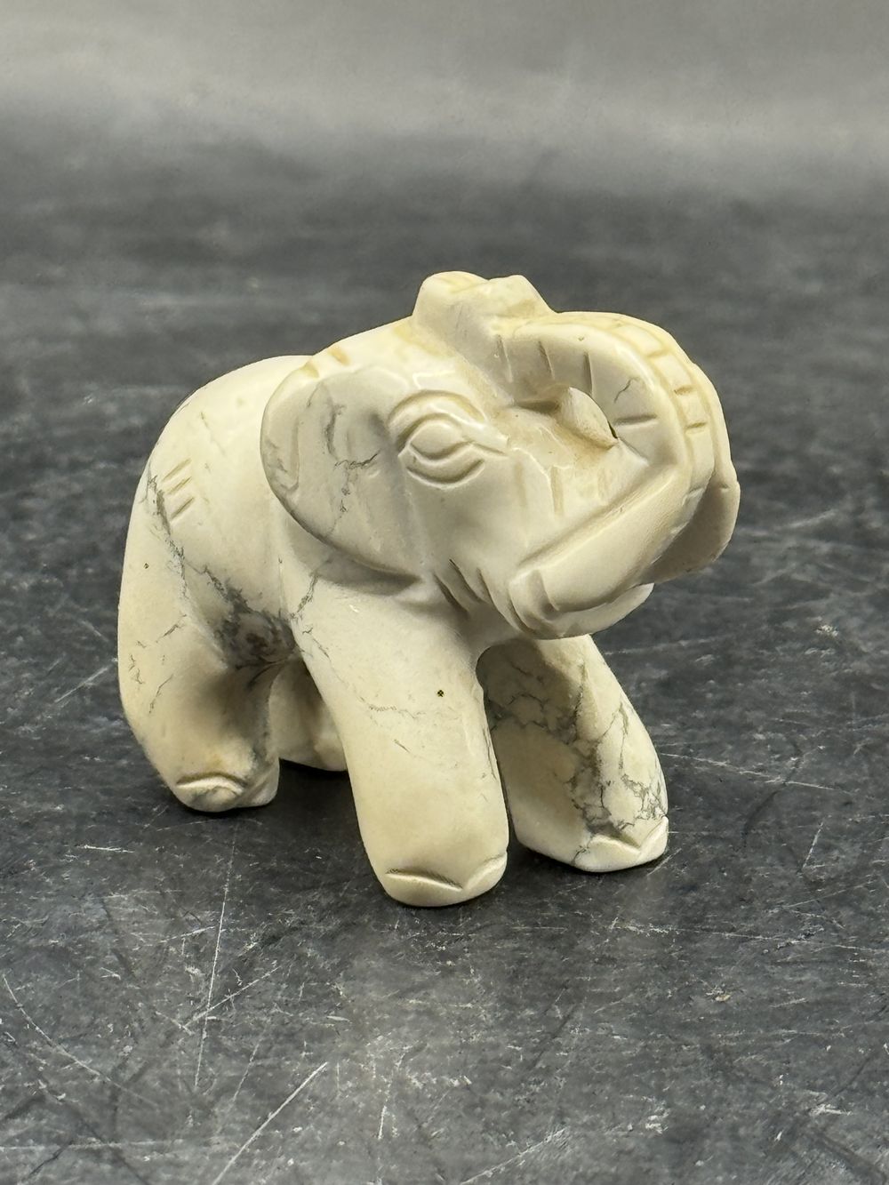 Ancienne miniature d’Eléphant en pierre dure (blanche) réalisée et sculptée à la main – Asie – Datant des années 80 – Collection – Décoration – Vintage