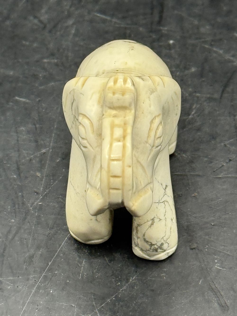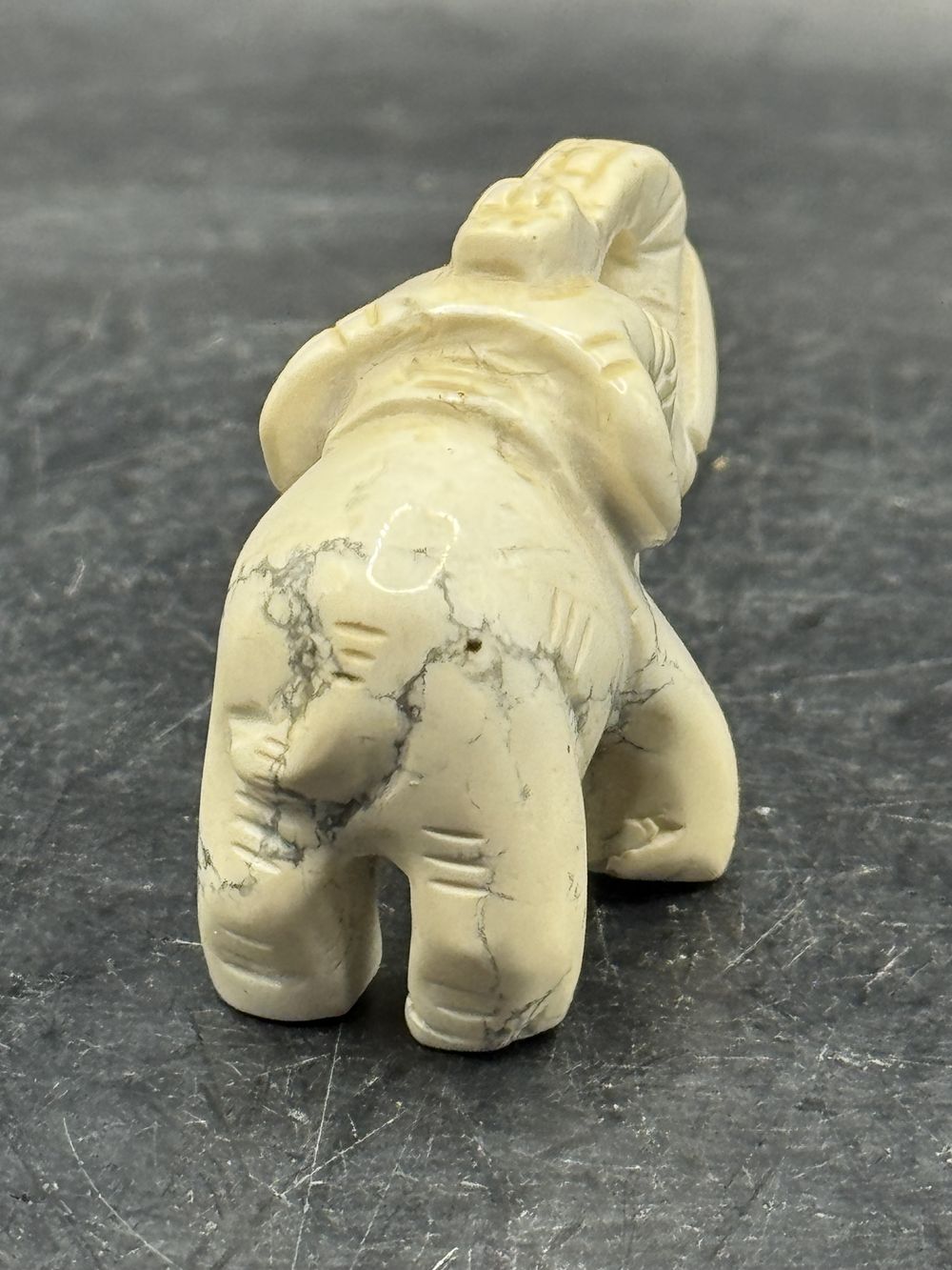 Ancienne miniature d’Eléphant en pierre dure (blanche naturelle) réalisée et sculptée à la main – Asie
