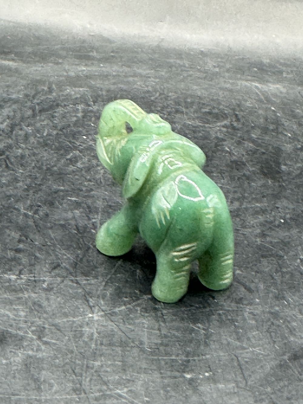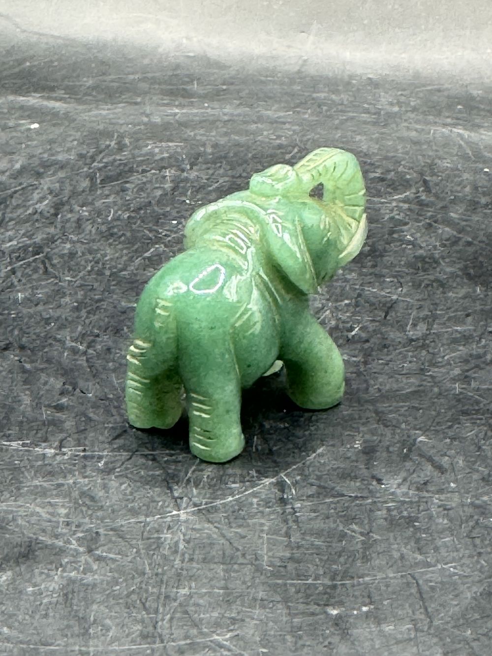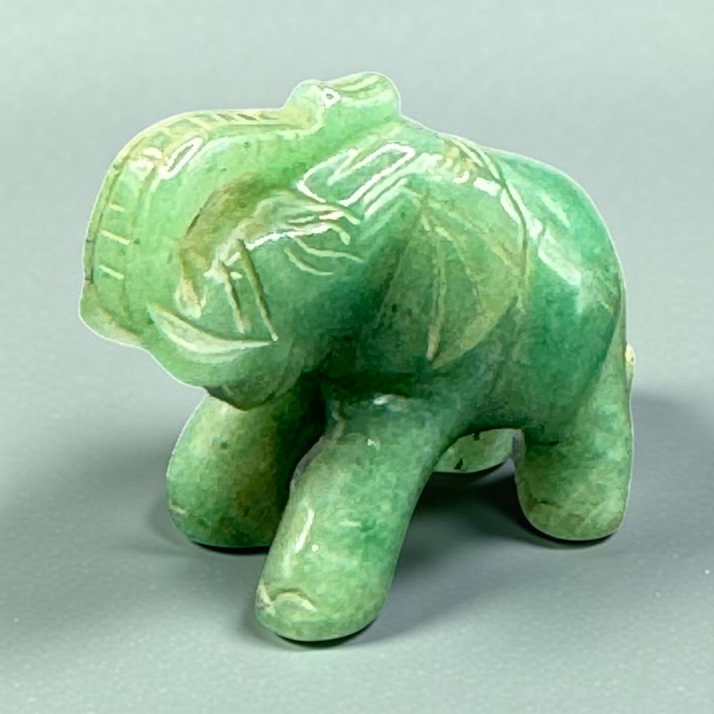 Ancienne miniature d’Eléphant en pierre dure (Jade verte naturelle) réalisée et sculptée à la main – Asie