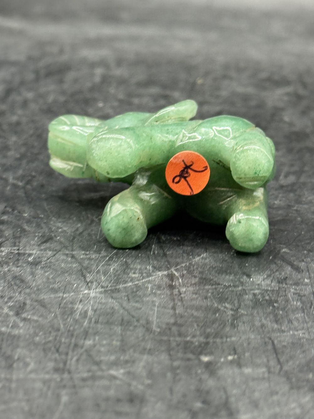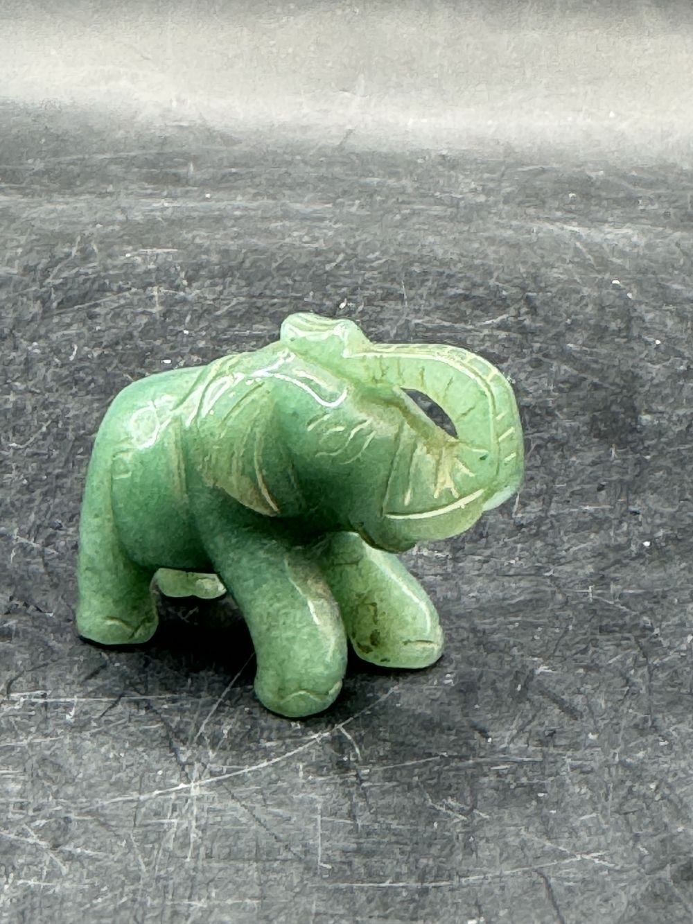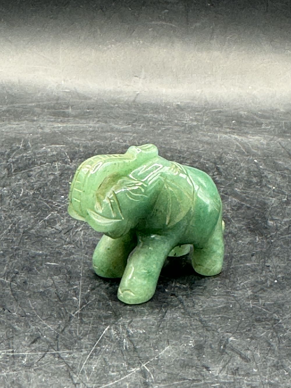 Ancienne miniature d’Eléphant en pierre dure (Jade verte naturelle) réalisée et sculptée à la main – Asie
