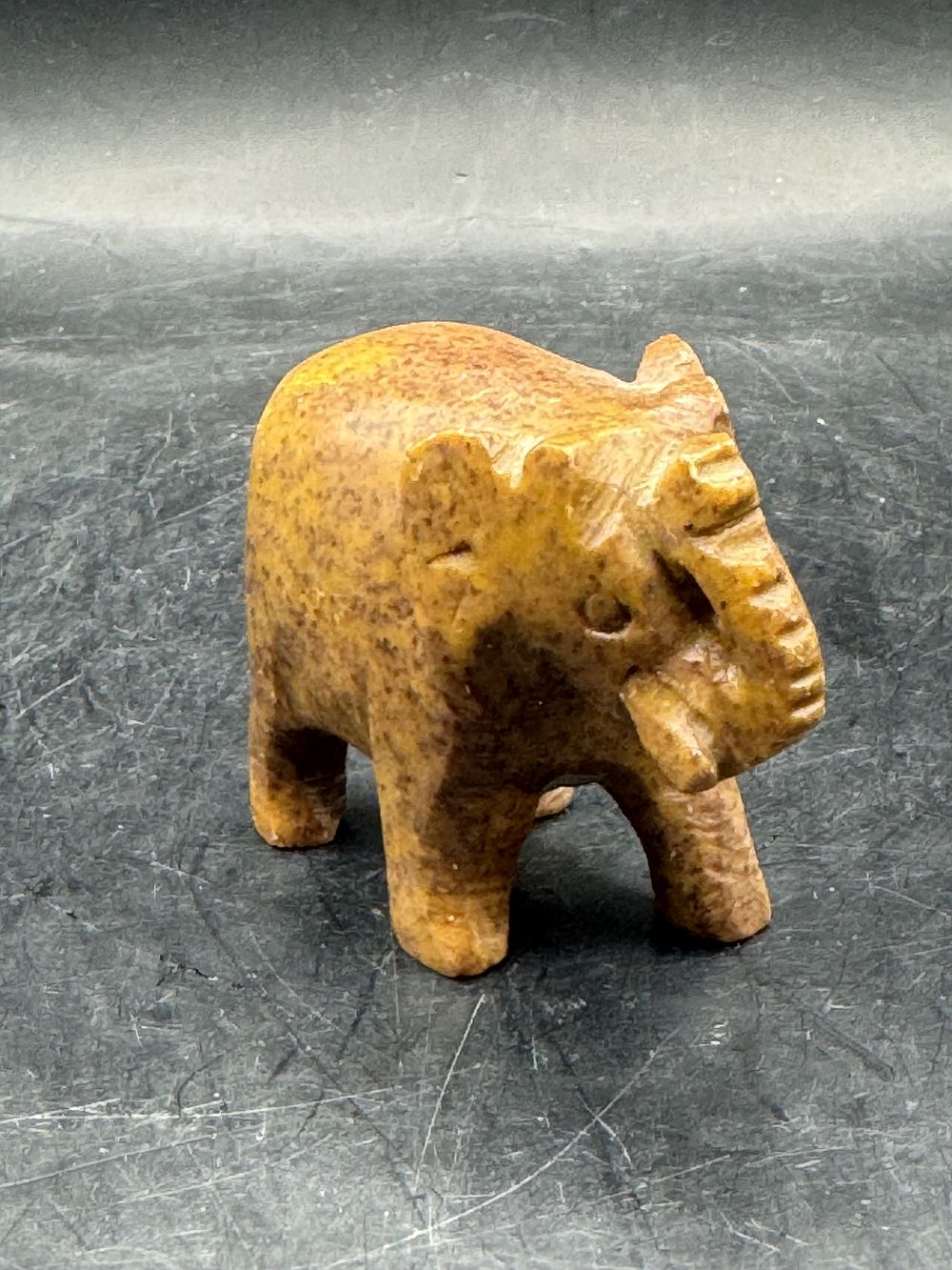 Ancienne miniature d’Eléphant en pierre dure (marron clair) réalisée et sculptée à la main – Asie – Datant des années 80 – Collection – Décoration – Vintage