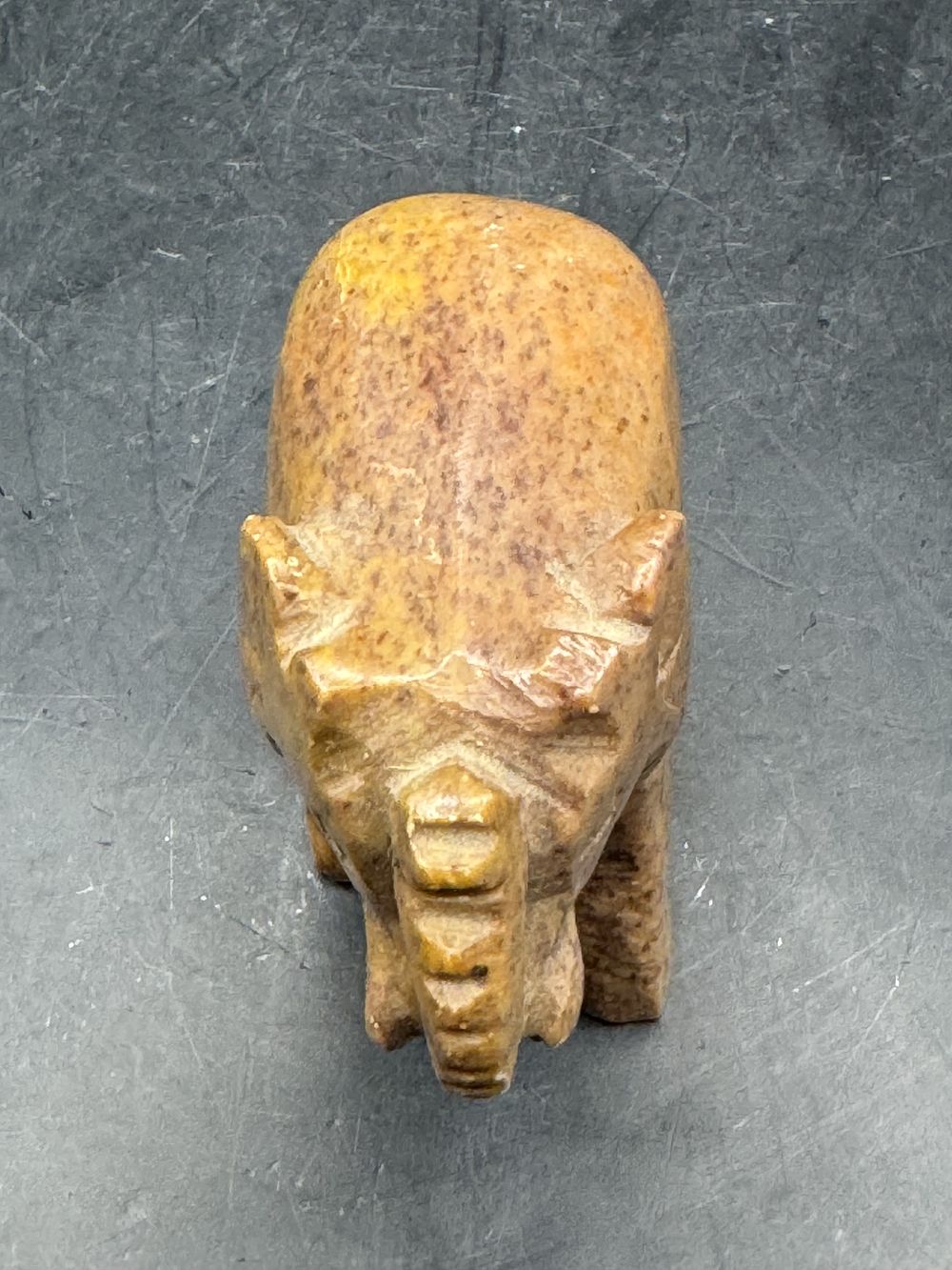 Ancienne miniature d’Eléphant en pierre dure (marron clair) réalisée et sculpté à la main – Asie