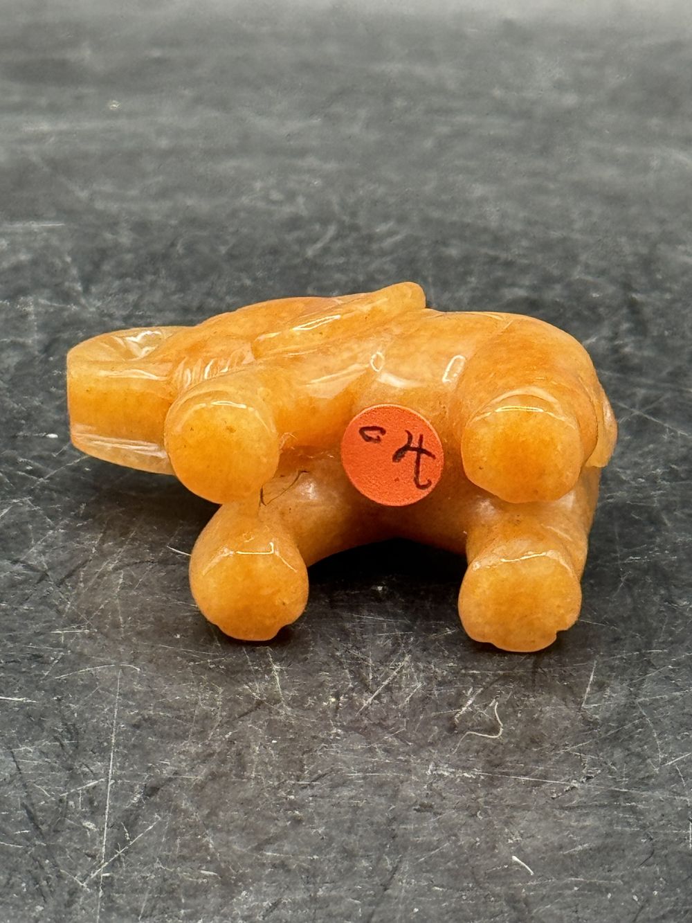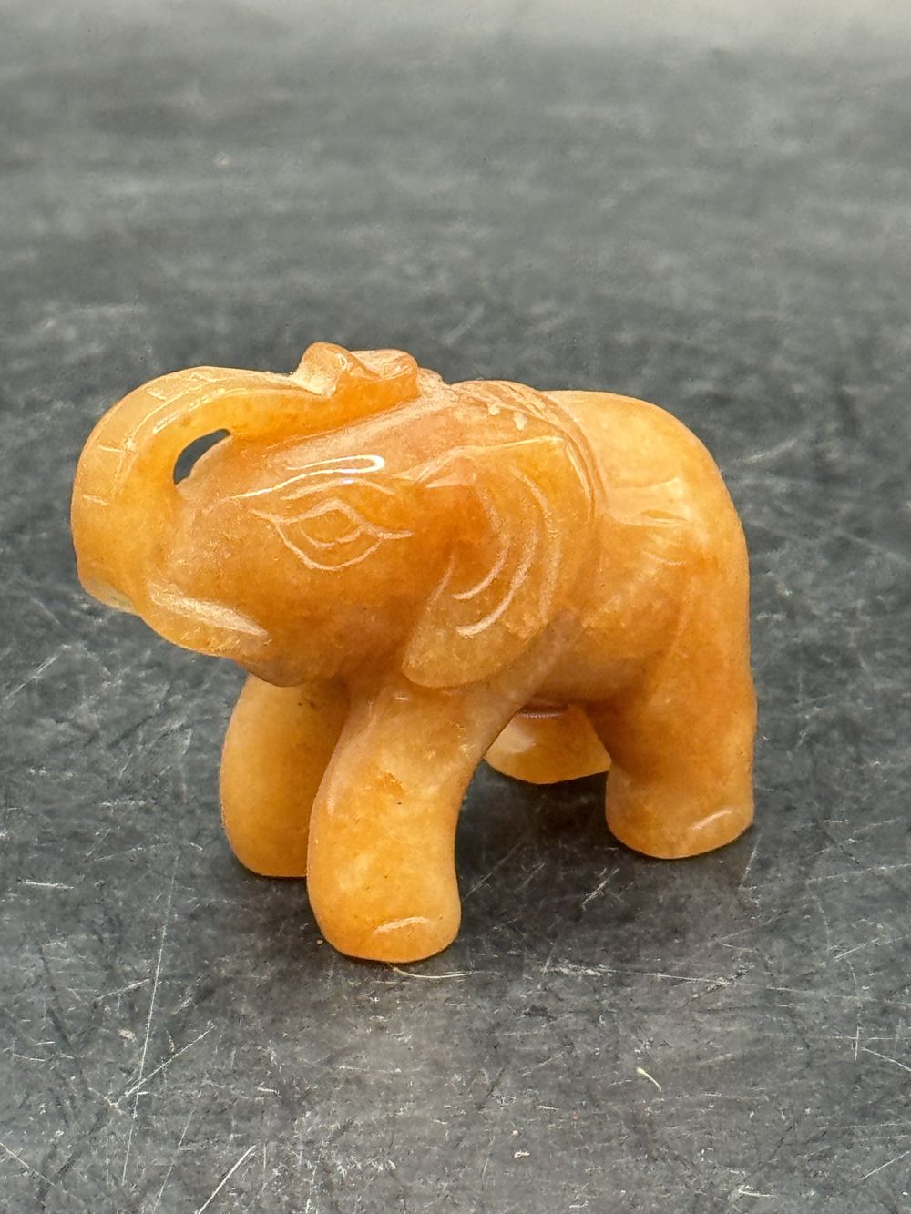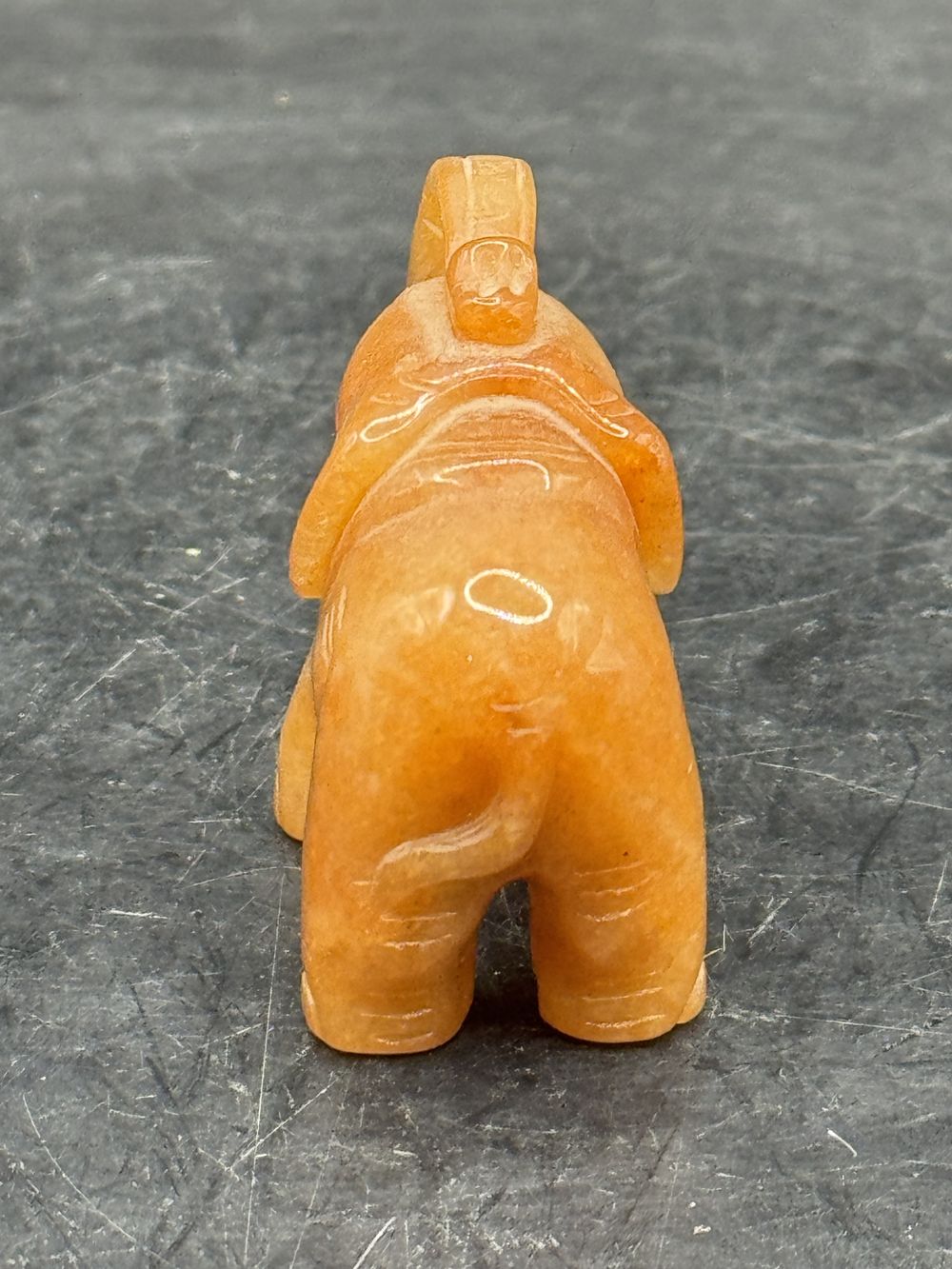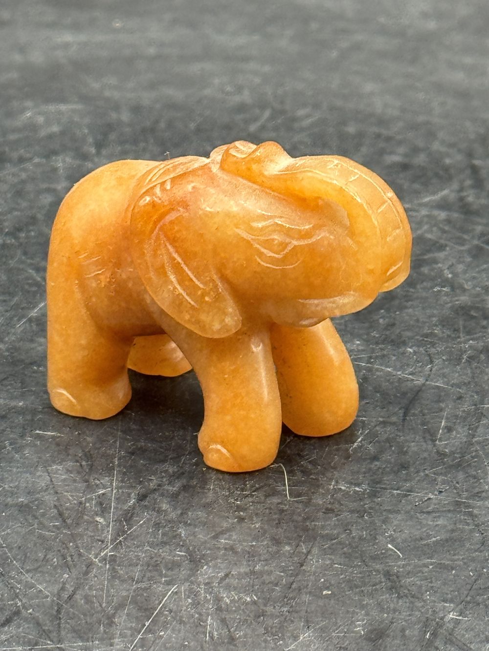 Ancienne miniature d’Eléphant en pierre dure (orange naturel) réalisée et sculptée à la main – Asie