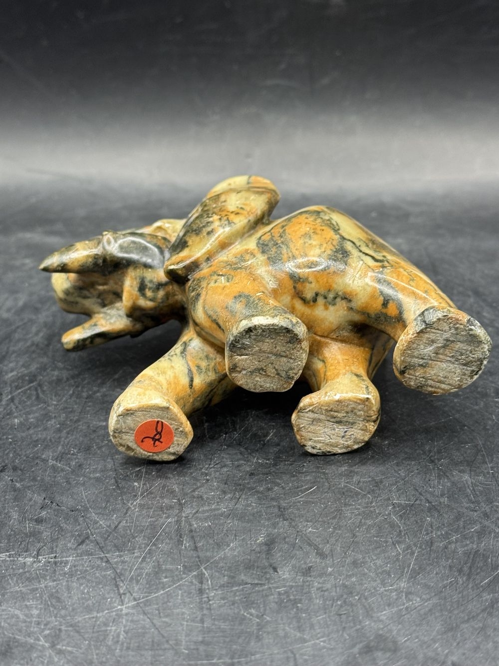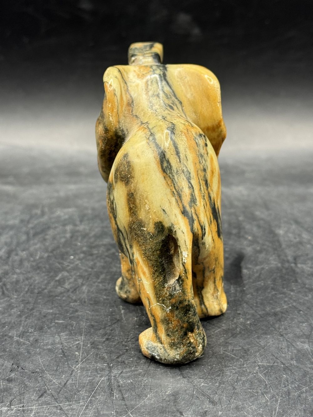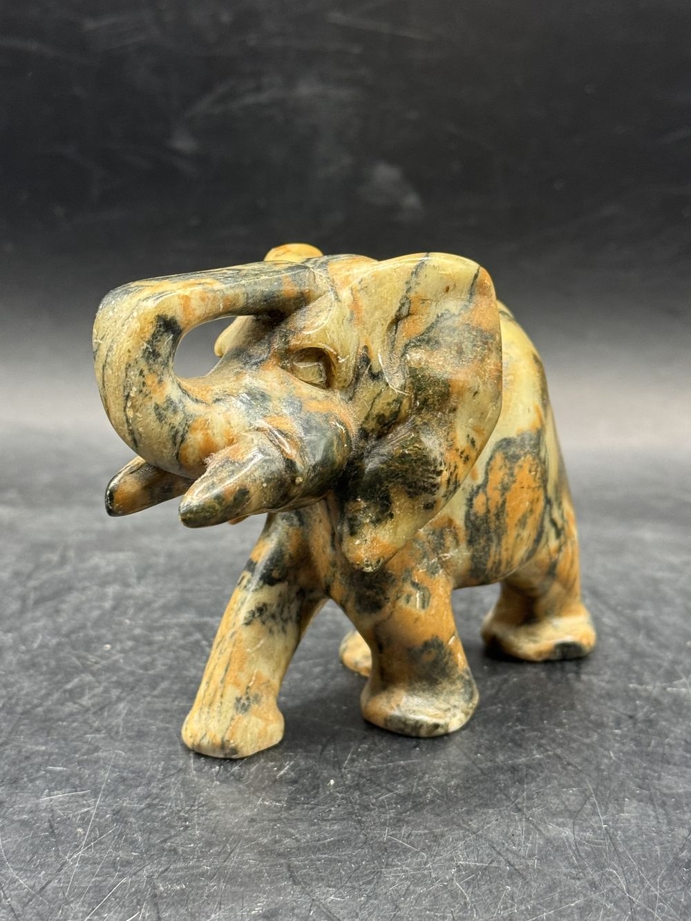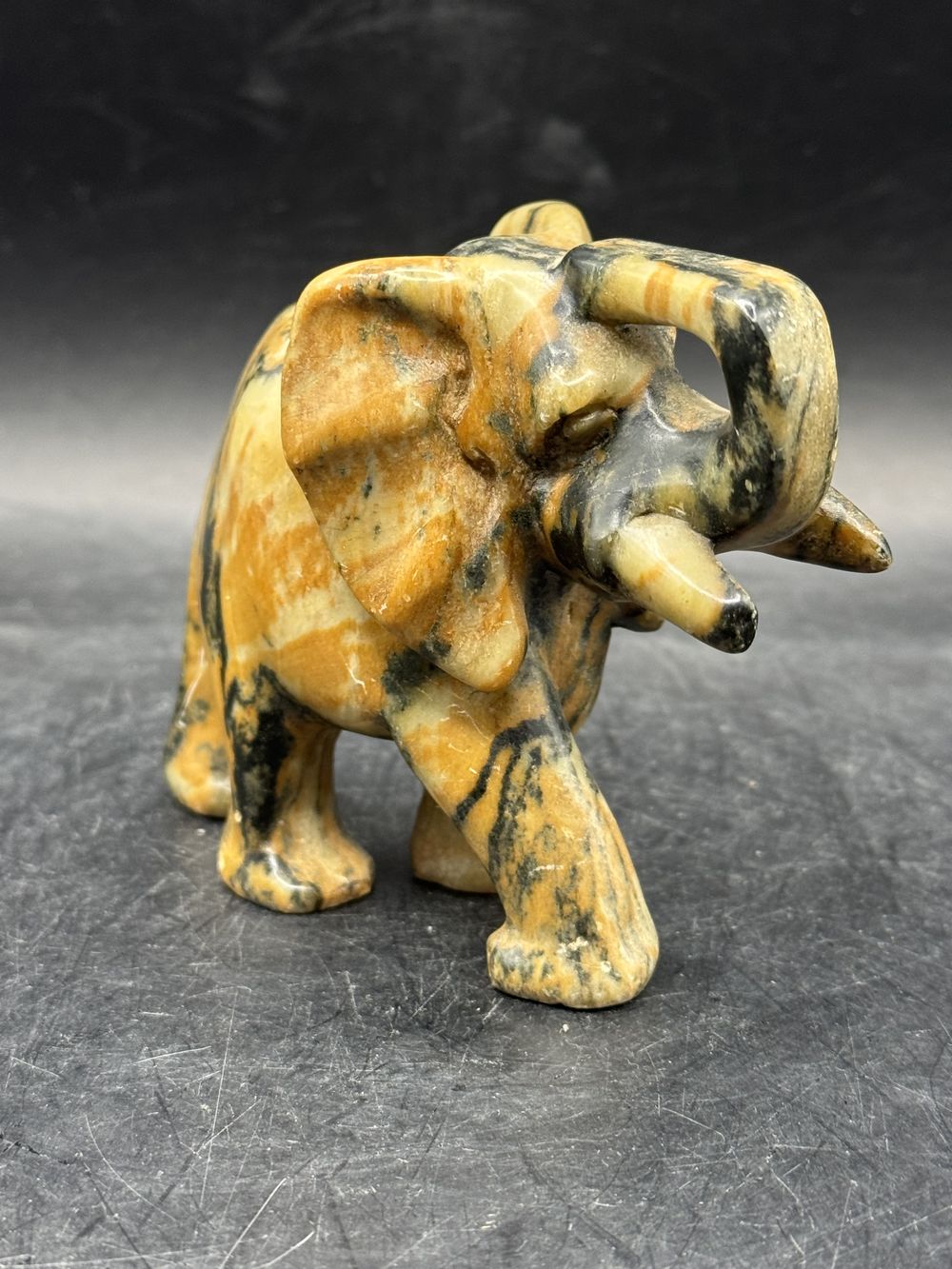 Ancienne miniature d’Eléphant réalisée à la main en pierre dure marron et noire – Asie – Datant des années 80 – Collection – Décoration – Vintage