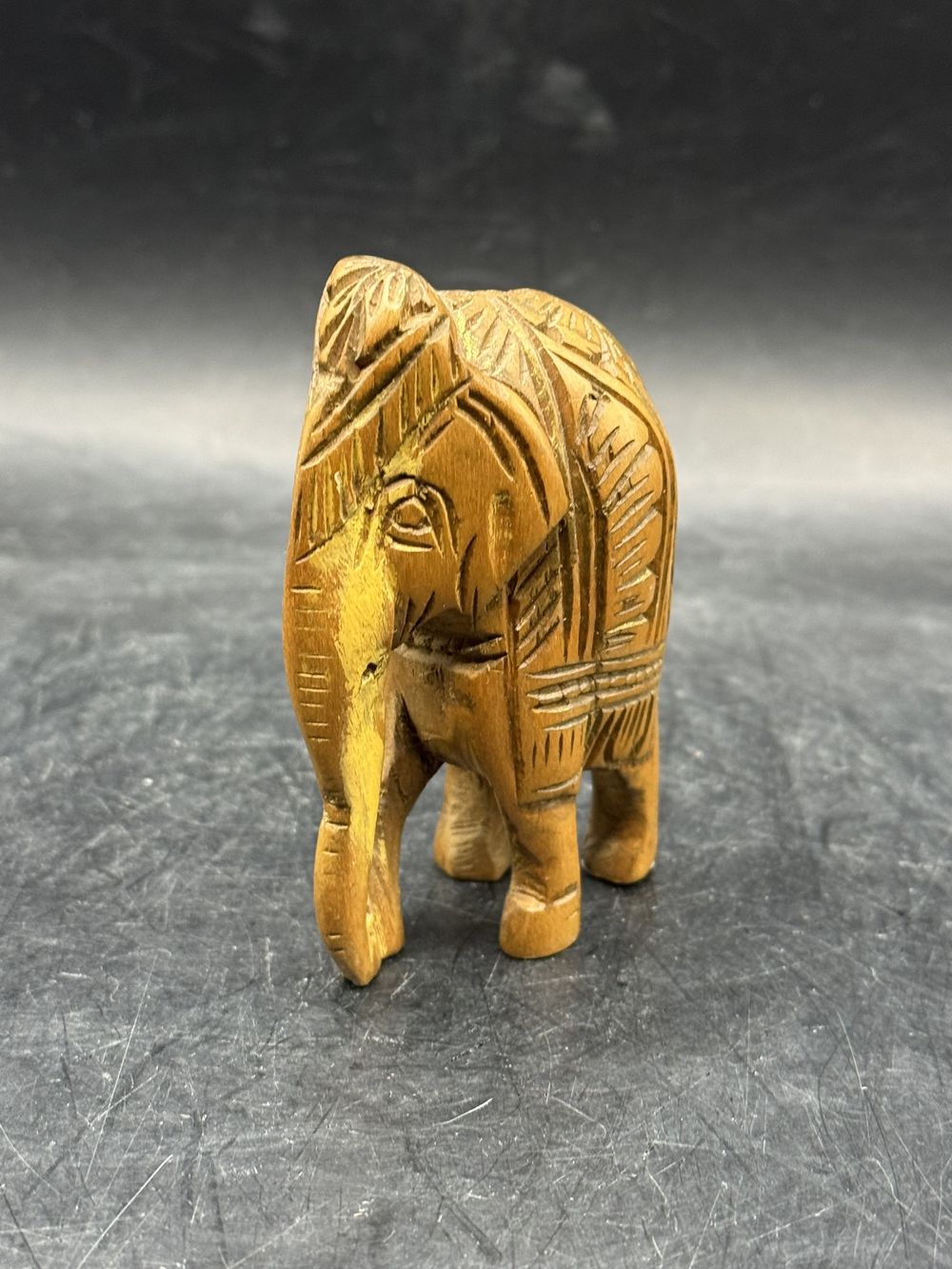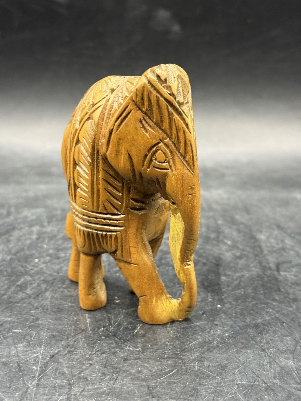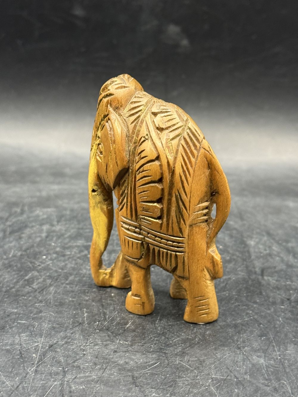Ancienne miniature d’Eléphant en bois réalisée et sculptée à la main – Asie – Datant des années 80 – Collection – Décoration – Vintage