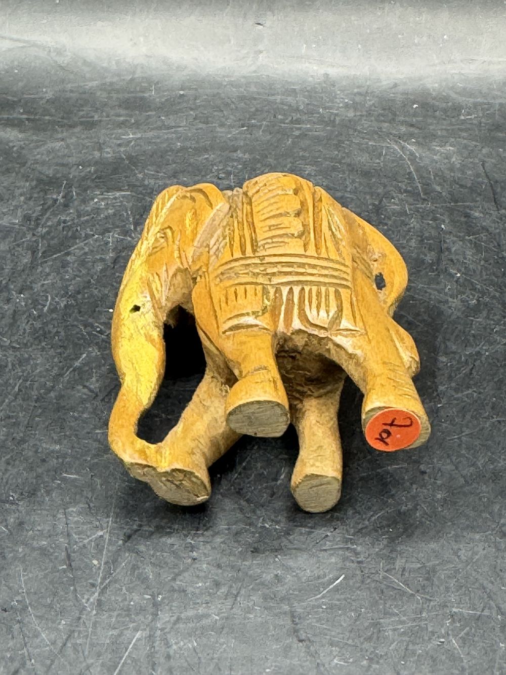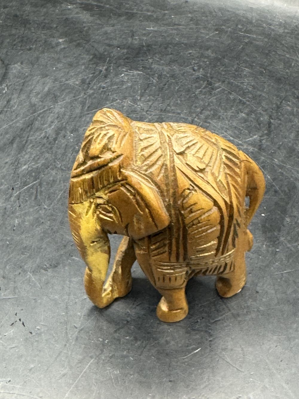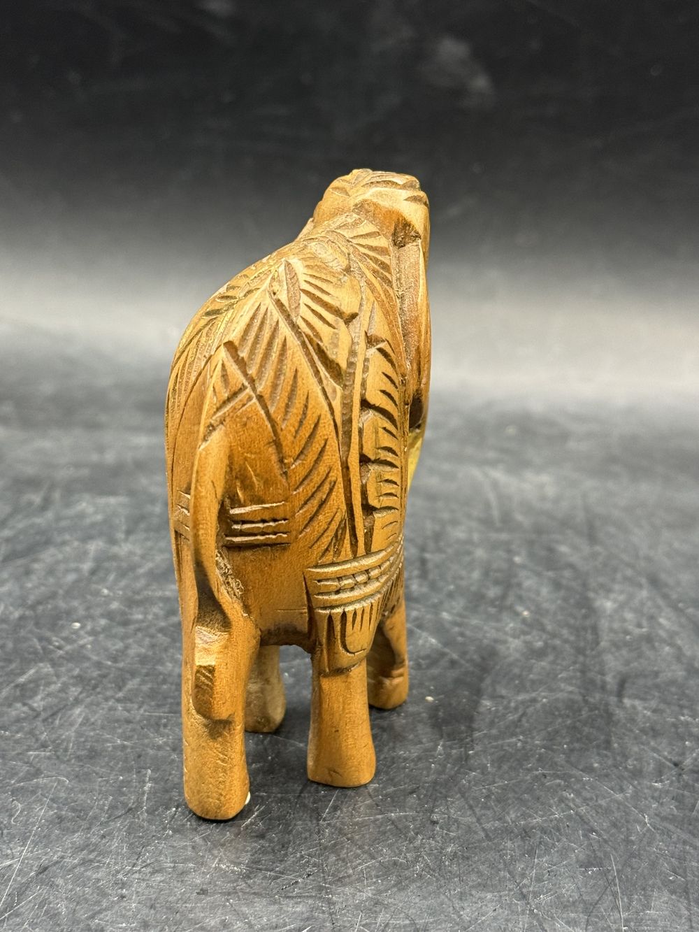 Ancienne miniature d’Eléphant en bois réalisée et sculptée à la main – Asie – Datant des années 80 – Collection – Décoration – Vintage