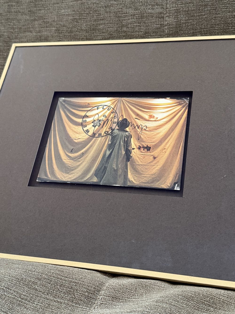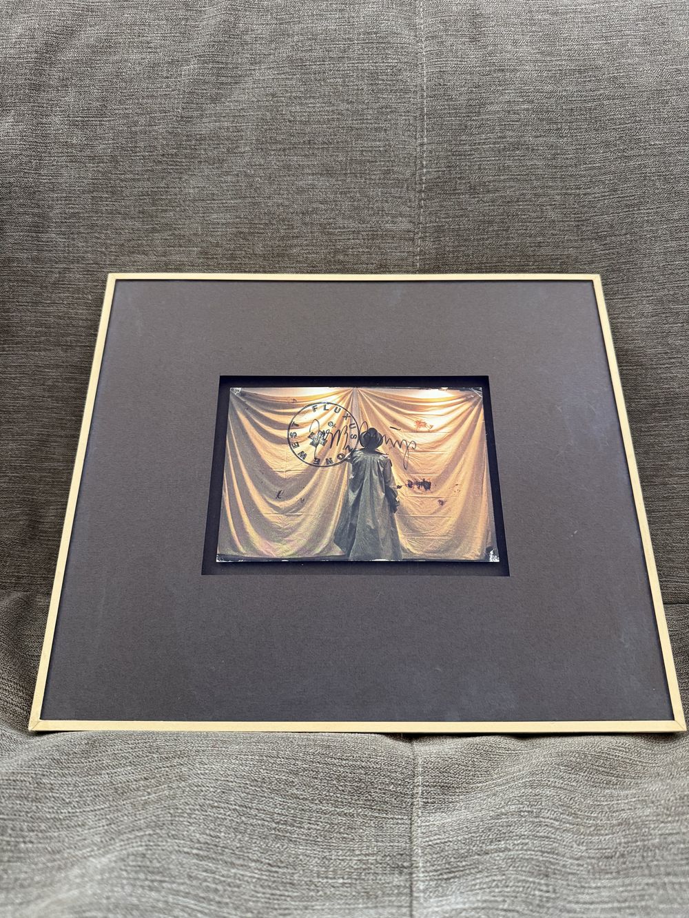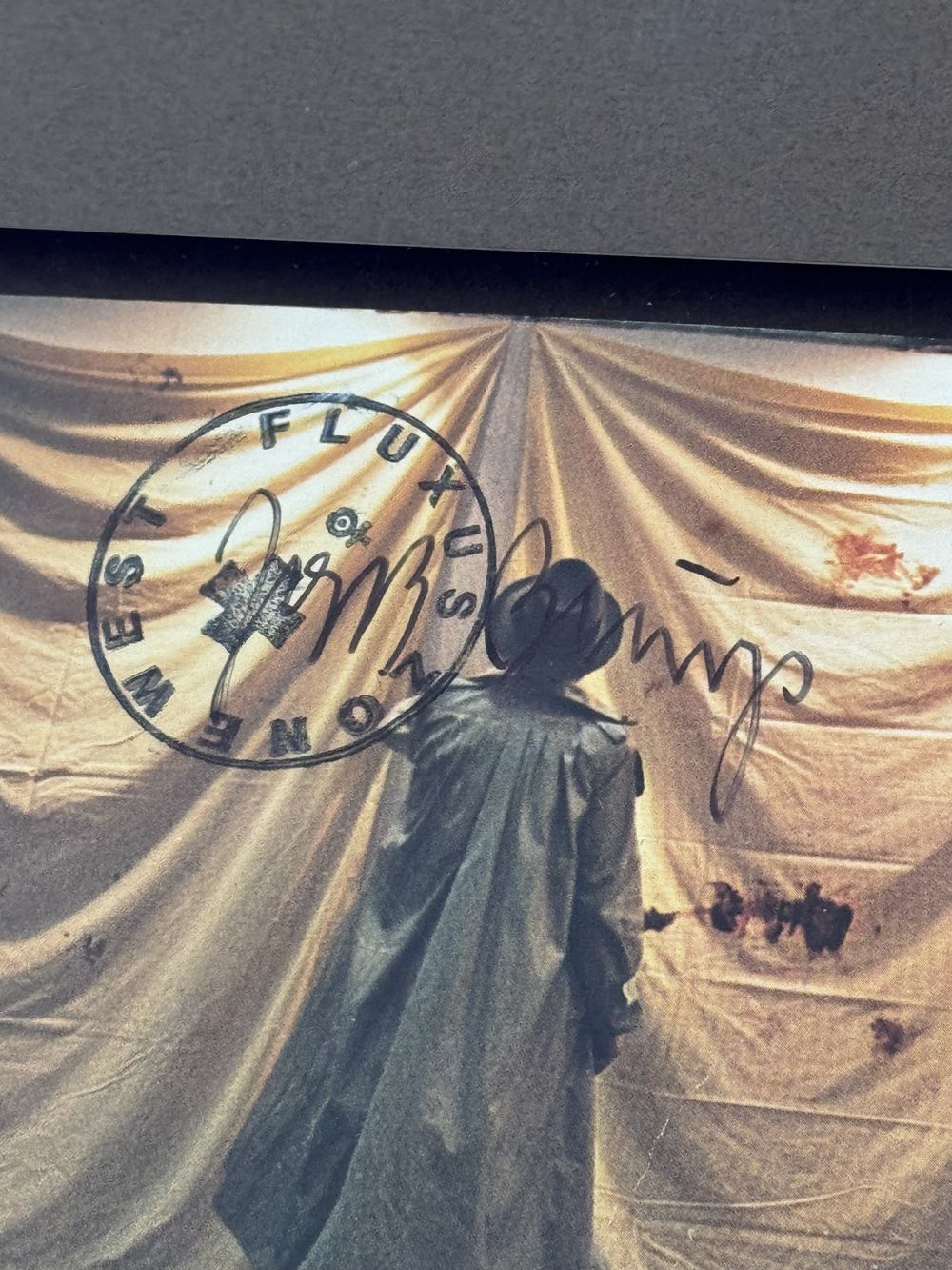 Autographe – Dédicace – Carte (le représentant) signée au feutre noir par Joseph Heinrich Beuys et recouverte, ce qui est rare, du tampon « Fluxux Zone West et la fameuse croix » – Collection