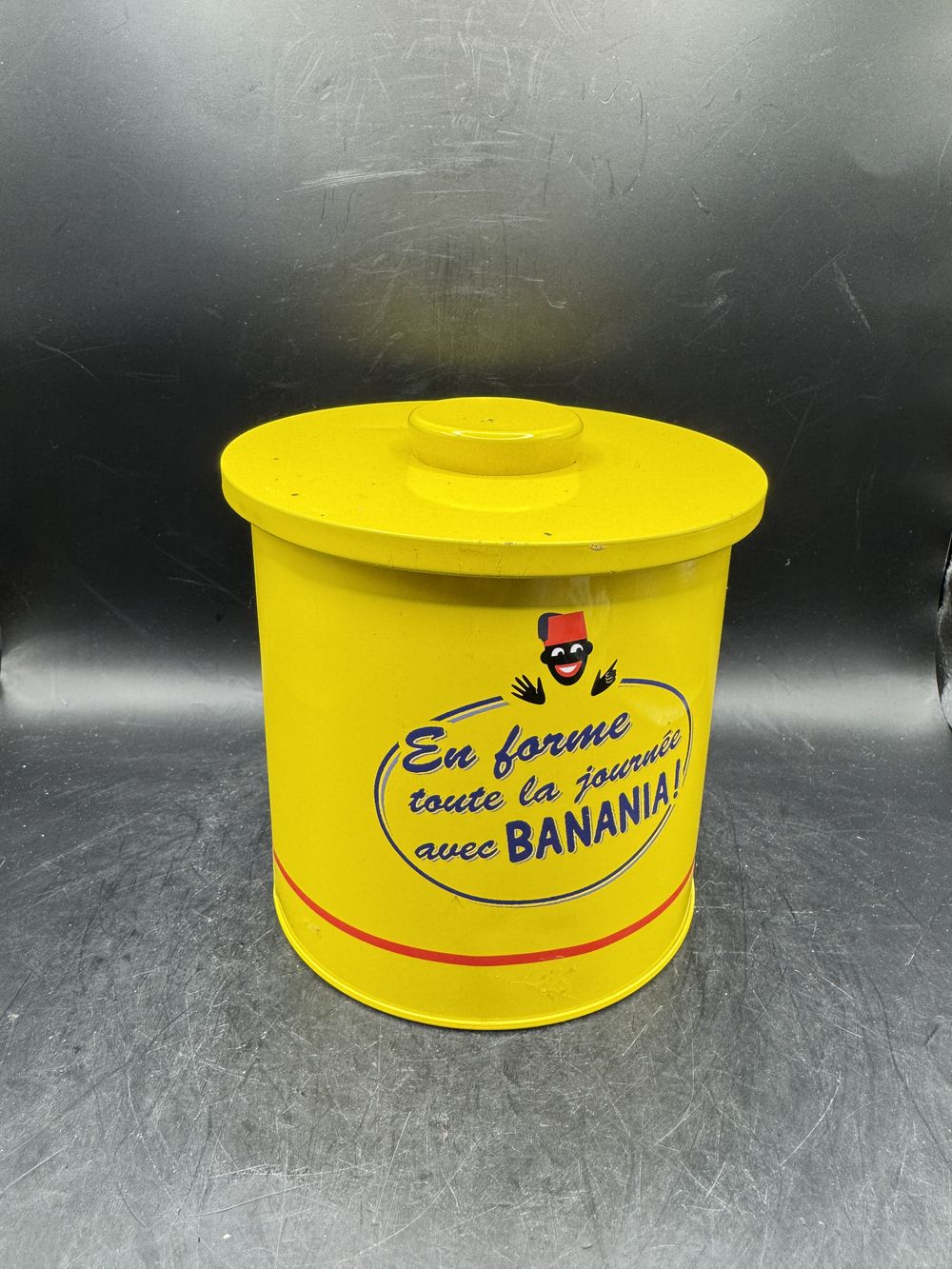 Boîte cylindrique publicitaire Banania vide – En tôle et lithographiée – De 2014 – Collection – Décoration