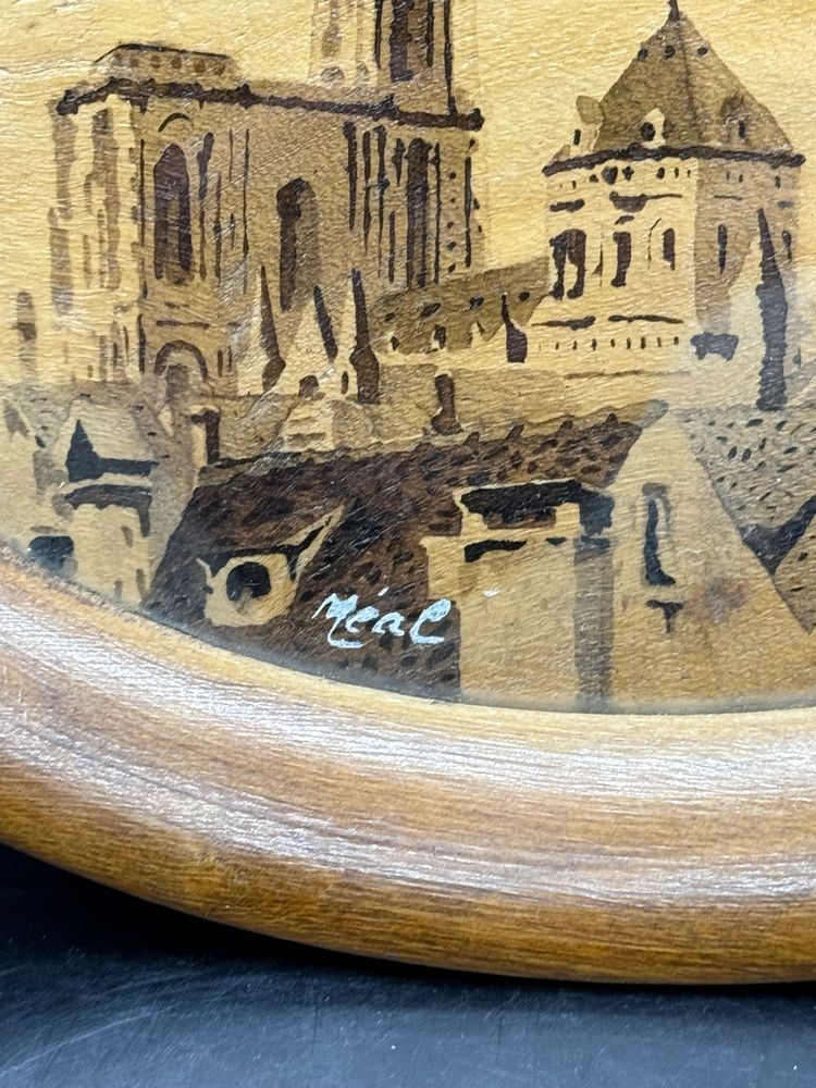 Charmant petit Plateau ancien – Peinture originale sur bois signée Louis Méal (paysage Alsacien) – Collection – Décoration