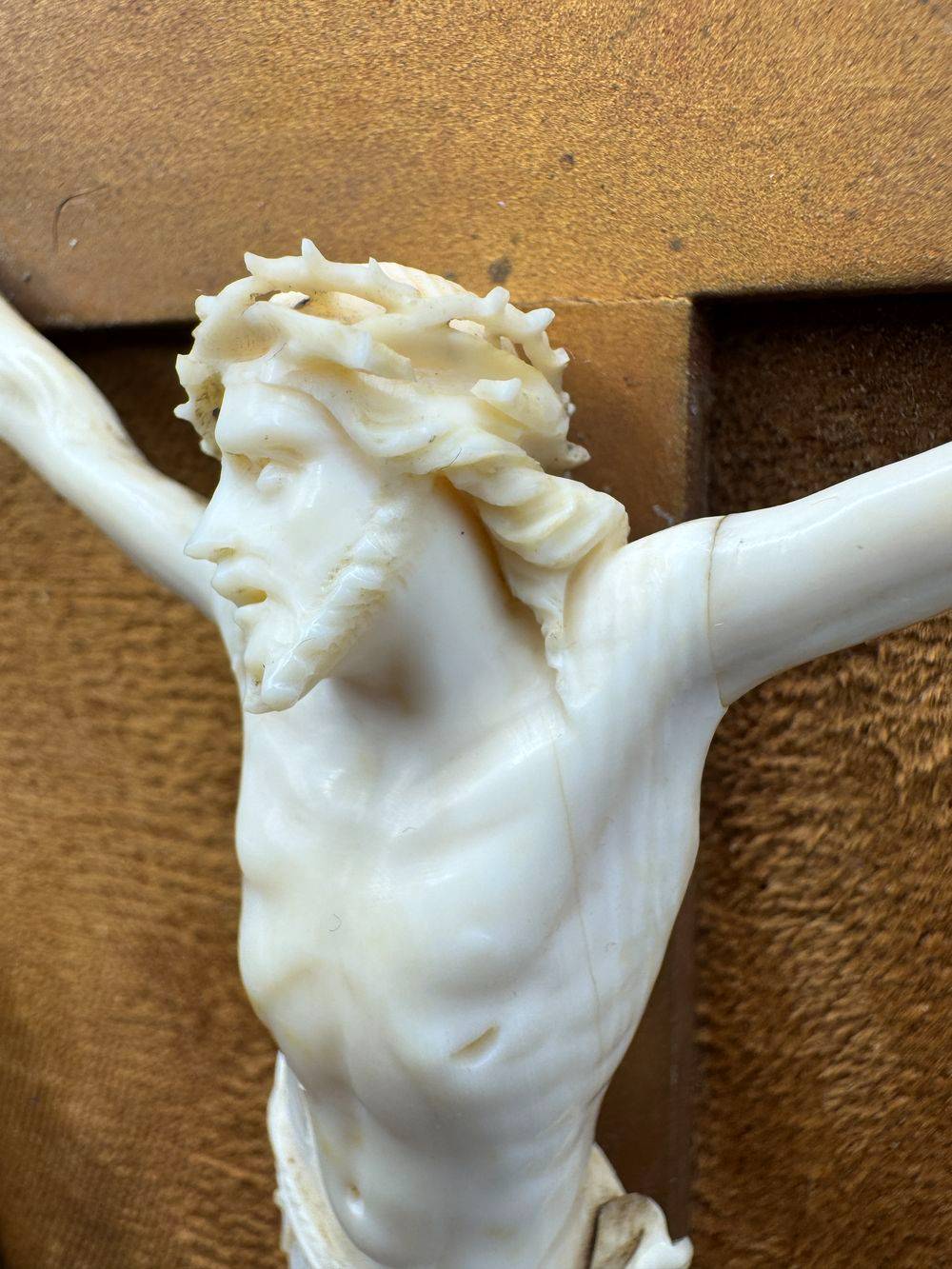 Christ de bout de lit dit crucifix en ivoire de morse sculpté d’époque fin 18ème début 19ème
