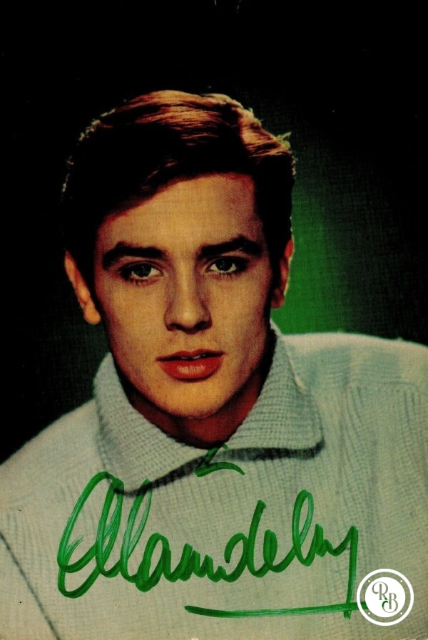 Dédicace – Autographe – Rare carte ancienne signée au feutre vert par Alain Delon jeune