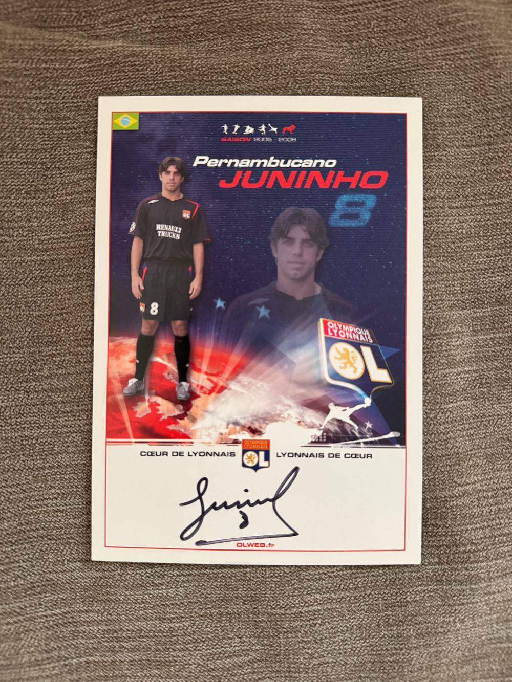 Dédicace – Autographe – Rare carte signée au feutre par JUNINHO
