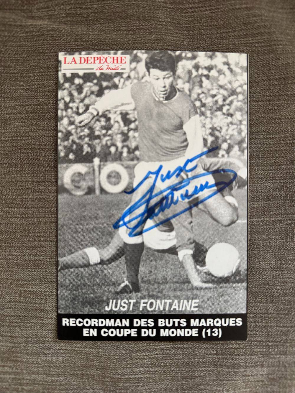 Dédicace – Autographe – Rare carte signée au feutre par Just Fontaine