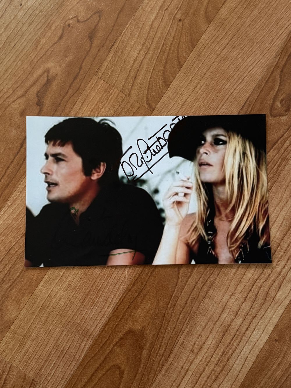 Dédicace – Autographe – TRES RARE photo beau format signée au feutre noir par Brigitte Bardot et au feutre vert par Alain Delon