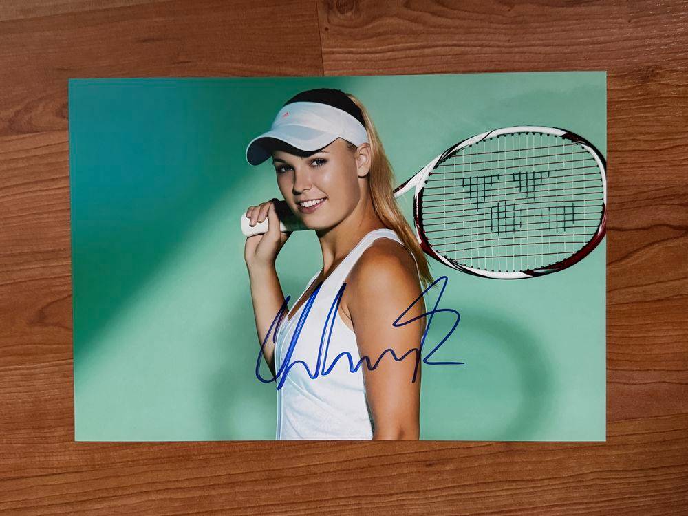 Dédicace – Autographe – Rare grande photo signée au feutre bleu par Caroline Wozniacki – Tennis