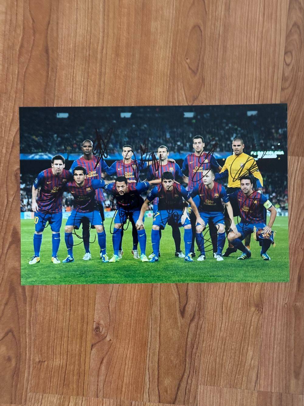 Dédicace – Autographe – Unique et grande belle photo de l’équipe du FC Barcelone – 2011/2012 – Signée au feutre par tous les joueurs – Format 20×30 – Messi – Ligue des Champions