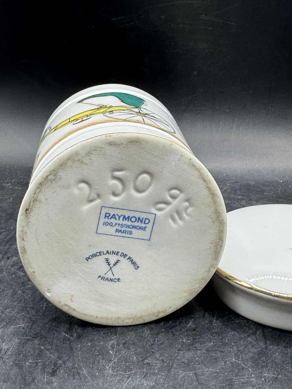 Une pièce rare et décorative pour la société Raymond, signée « Porcelaine de Paris – France » avec les célèbres flèches croisées, emblème de la maison depuis le XVIIIe siècle