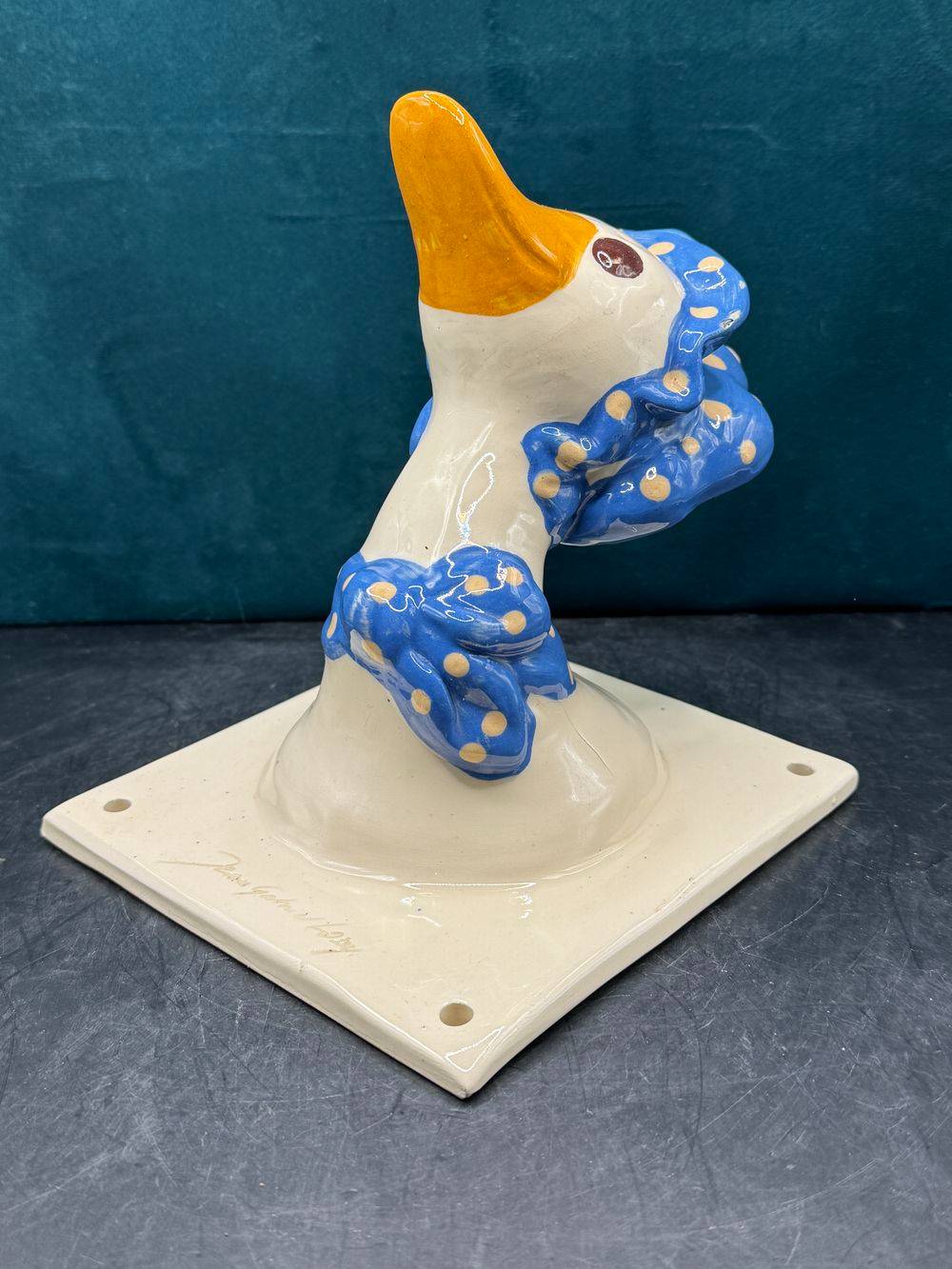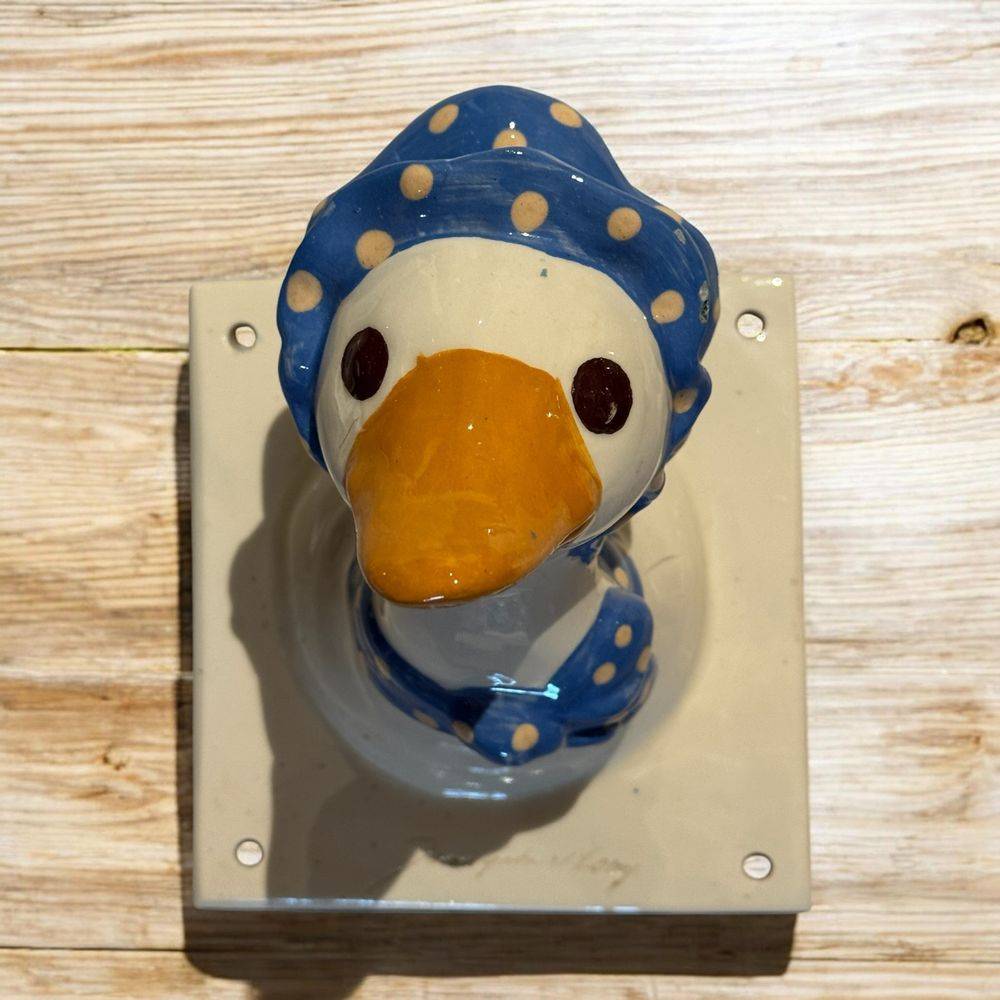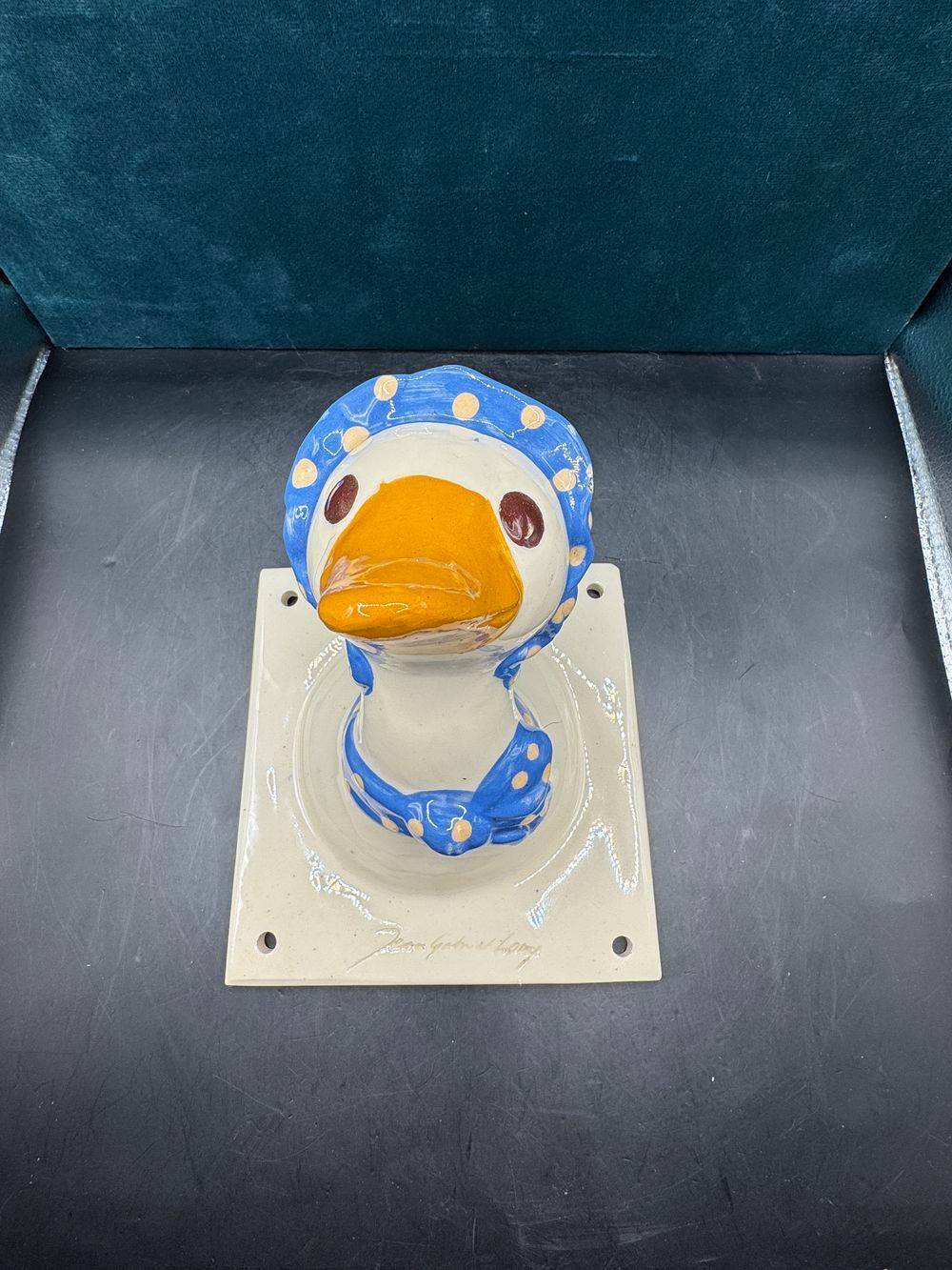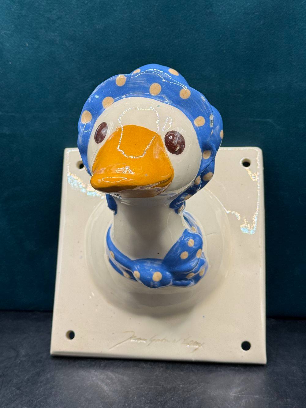 Jolie et rare céramique des années 70/80 – A accrocher au mur (patère / Porte-manteau) – Signée Jean Gabriel Loup – Représentant une canne ou une oie et son fichu sur la tête – Collection – Décoration
