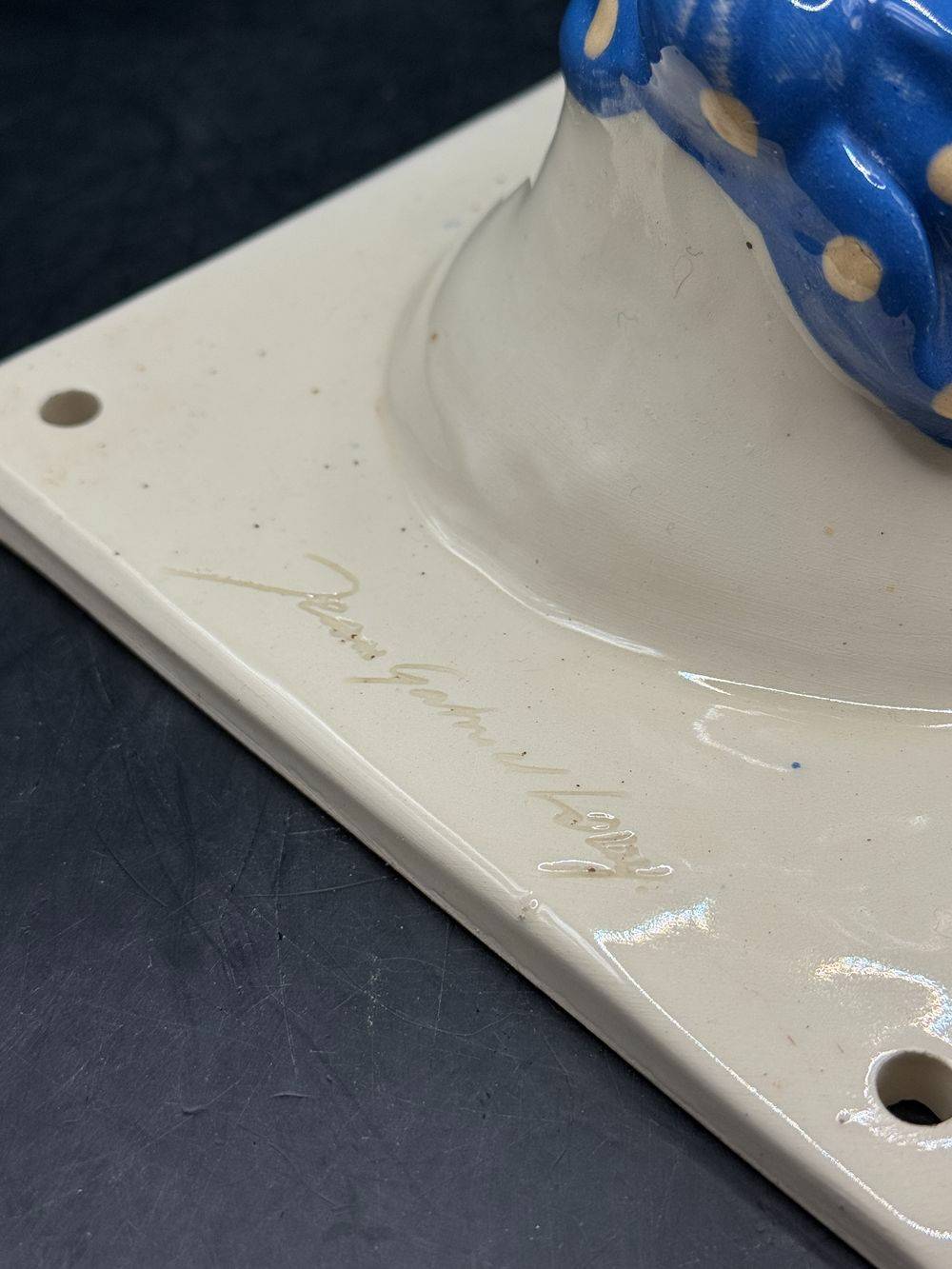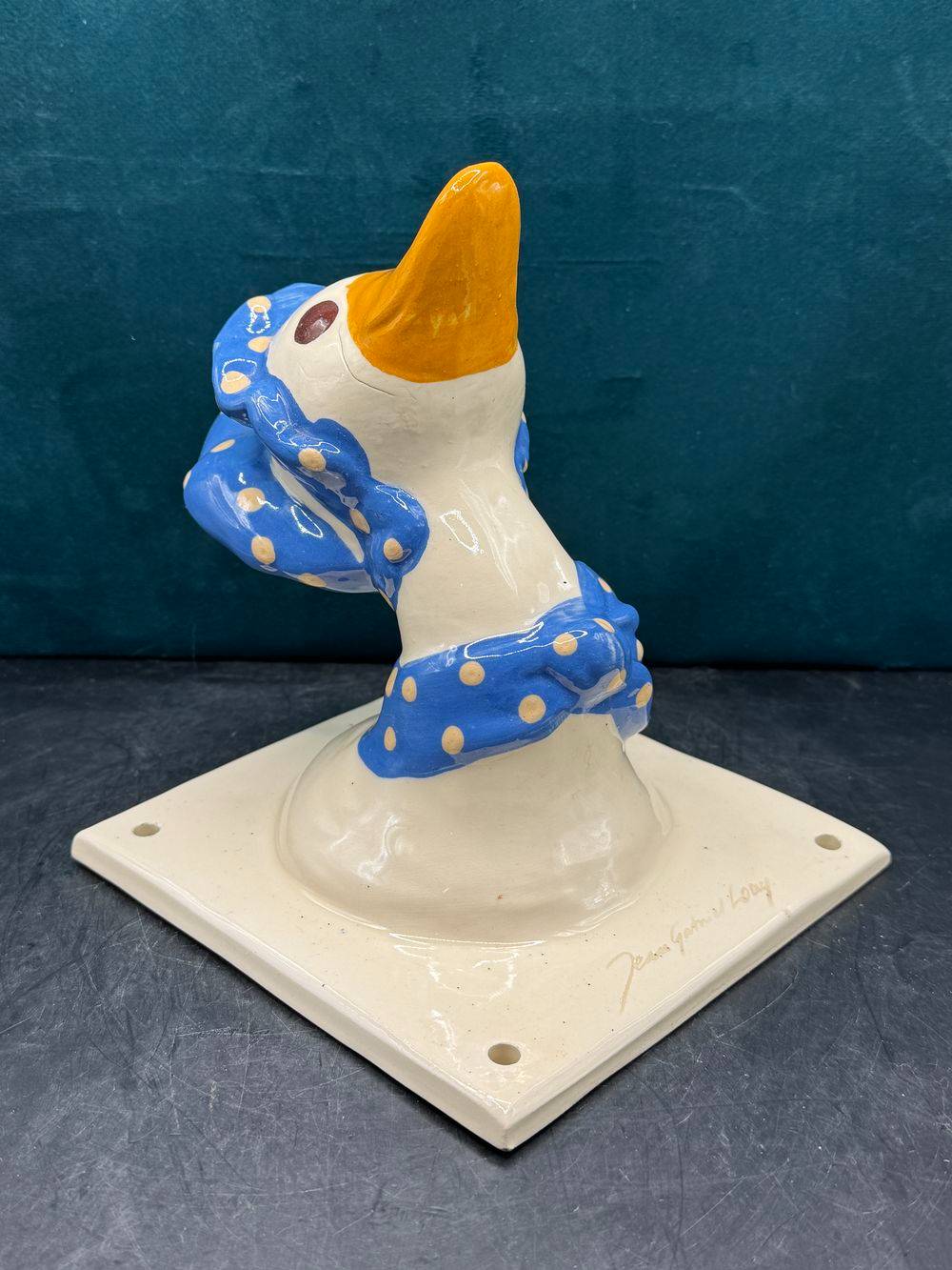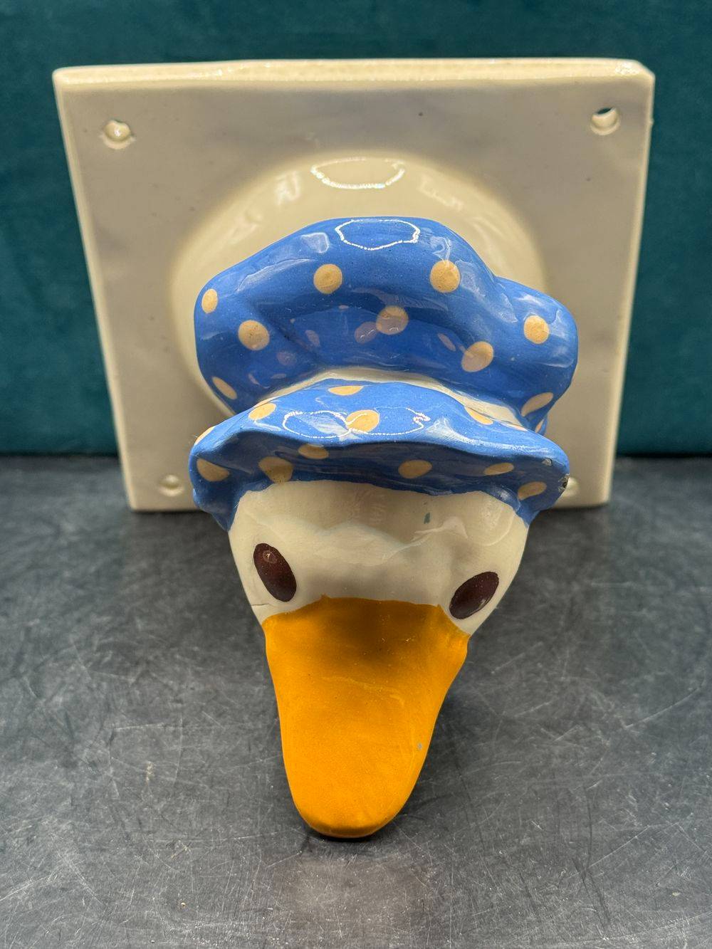 Jolie et rare céramique des années 70/80 – A accrocher au mur (patère / Porte-manteau) – Signée Jean Gabriel Loup – Représentant une canne ou une oie et son fichu sur la tête – Collection – Décoration
